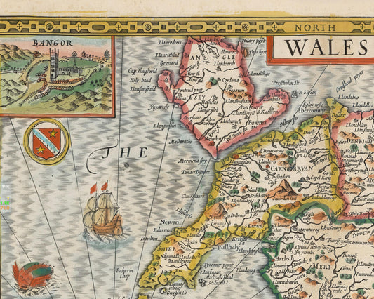 Rare Old WALES Map John Speed 1611 - Cymru Cardiff Swansea St Davids