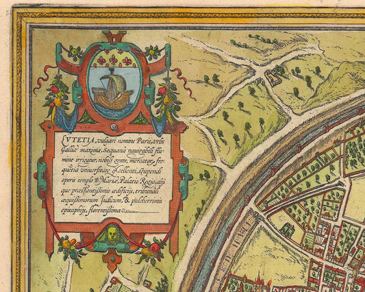 Old PARIS Map, 1572 by Georg Braun - Notre Dame, Bastille, Seine