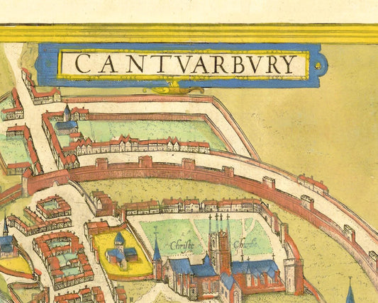 Old CANTERBURY Map 1588 by Braun - Cantuarbury Chaucer Christ Church