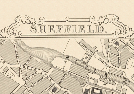 Vintage SHEFFIELD Map 1851 by John Rapkin