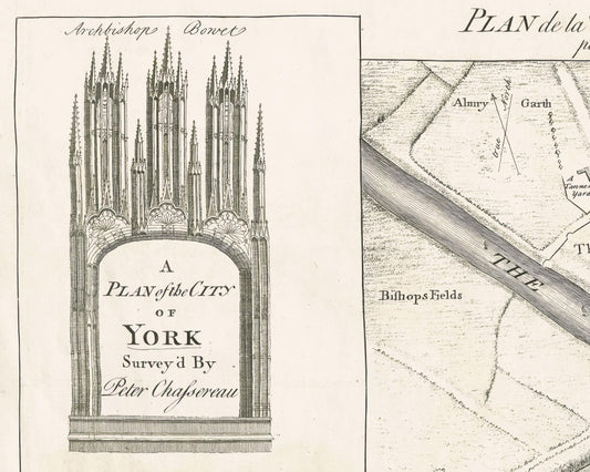 Rare Old YORK Map 1750 John Rocque - York Minster, Cliffords Tower