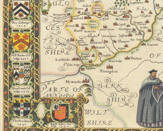 OXFORDSHIRE Old Map John Speed 1611 Oxford Banbury Abingdon Bicester
