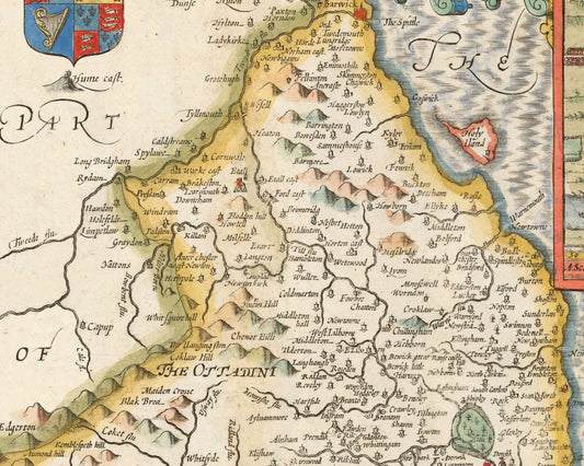 Old NORTHUMBERLAND map John Speed 1611 Newcastle, Gateshead, Berwick