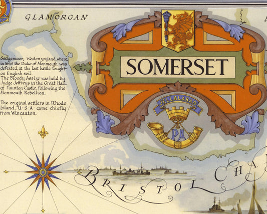 Vintage SOMERSET Map, 1947, Ernest Clegg - Taunton, Bath, Wells