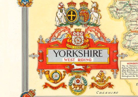 Vintage YORKSHIRE Map, West Riding 1946, Ernest Clegg, pictorial map