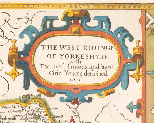 West Riding of YORKSHIRE Vintage Map by John Speed 1610 Leeds Bradford