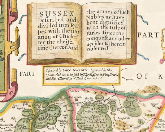 Old SUSSEX map John Speed 1611 Brighton Worthing Eastbourne Crawley