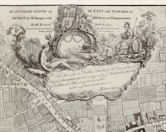 Old DUBLIN Map 1773 by John Rocque - River Liffey, Trinity College, Castle