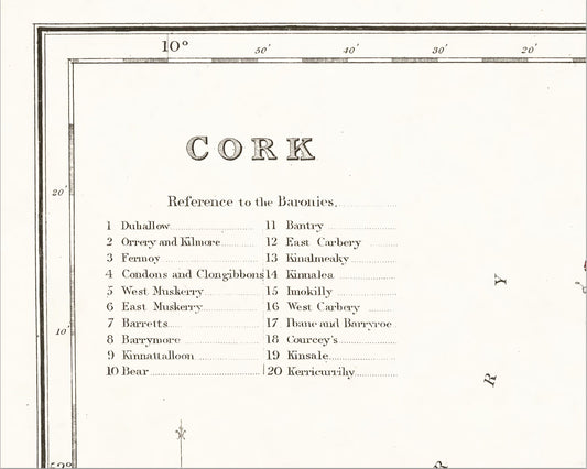 County CORK 1846 by Creighton - Antique Irish Reproduction Map
