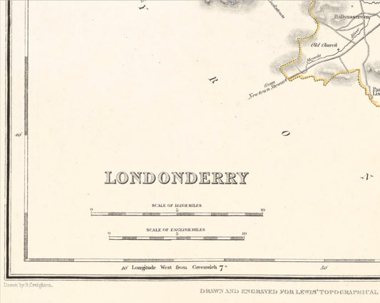 County DERRY/LONDONDERRY 1846 by Creighton - Irish Reproduction Map
