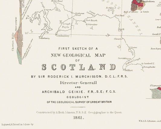 Exceptional Old GEOLOGICAL map of SCOTLAND 1862 Roderick Murchison