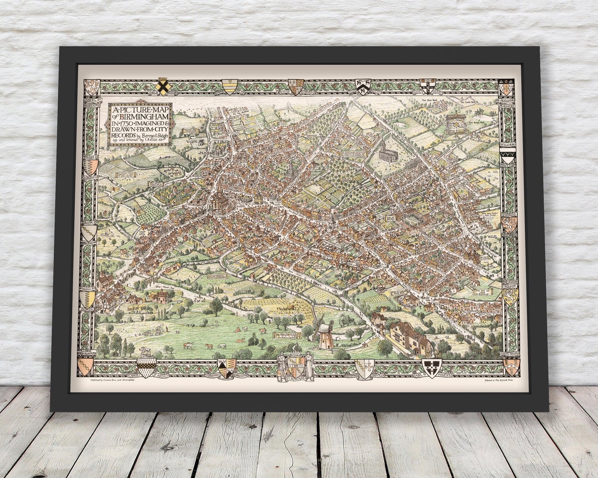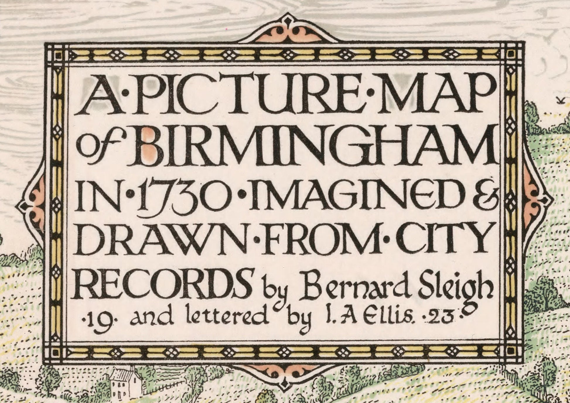 BIRMINGHAM Pictorial Map as imagined 1730, Bernard Sleigh 1923