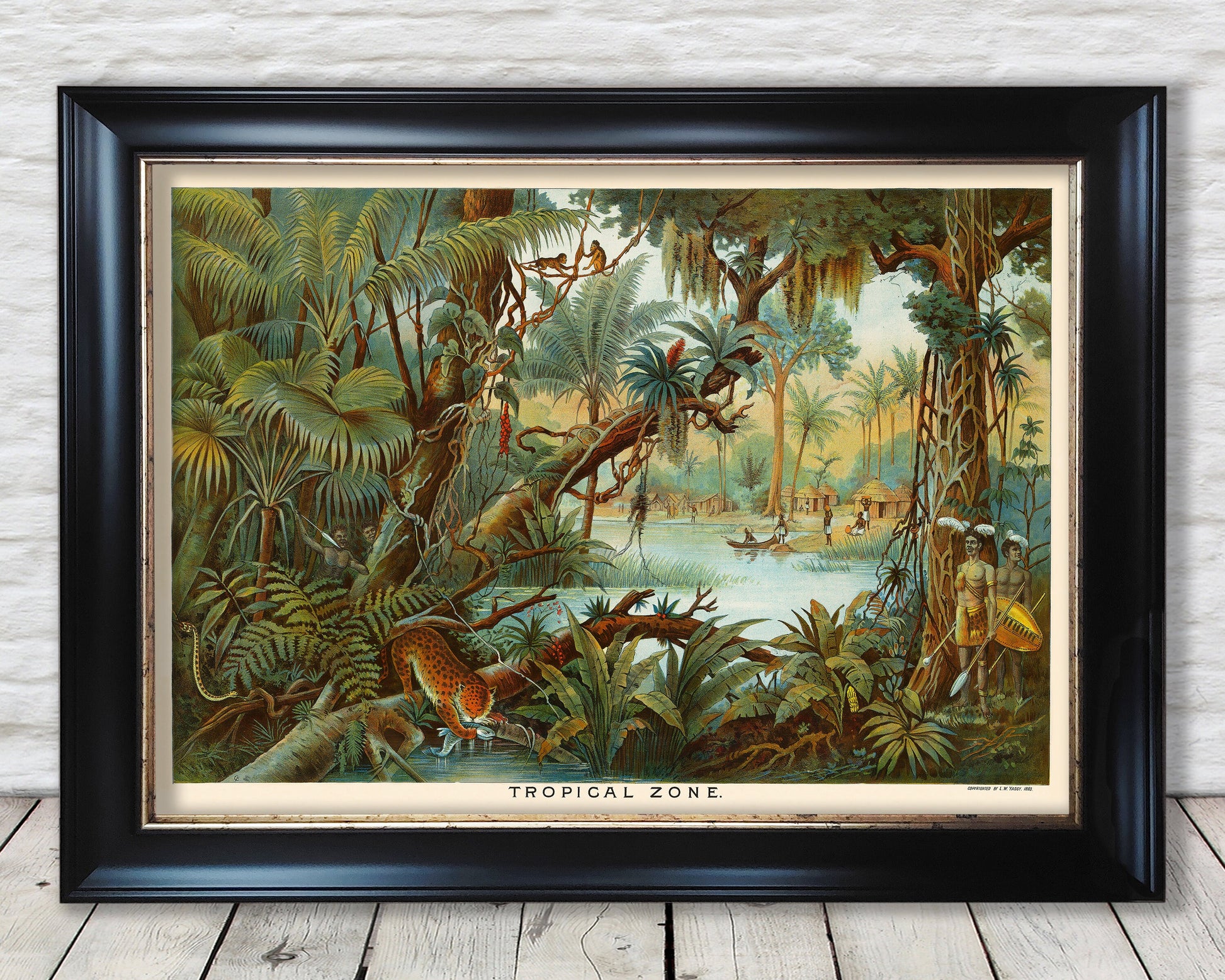 Charming TROPICAL Zone scene by Yevi Yaggy 1893 - Jungle flora and fauna