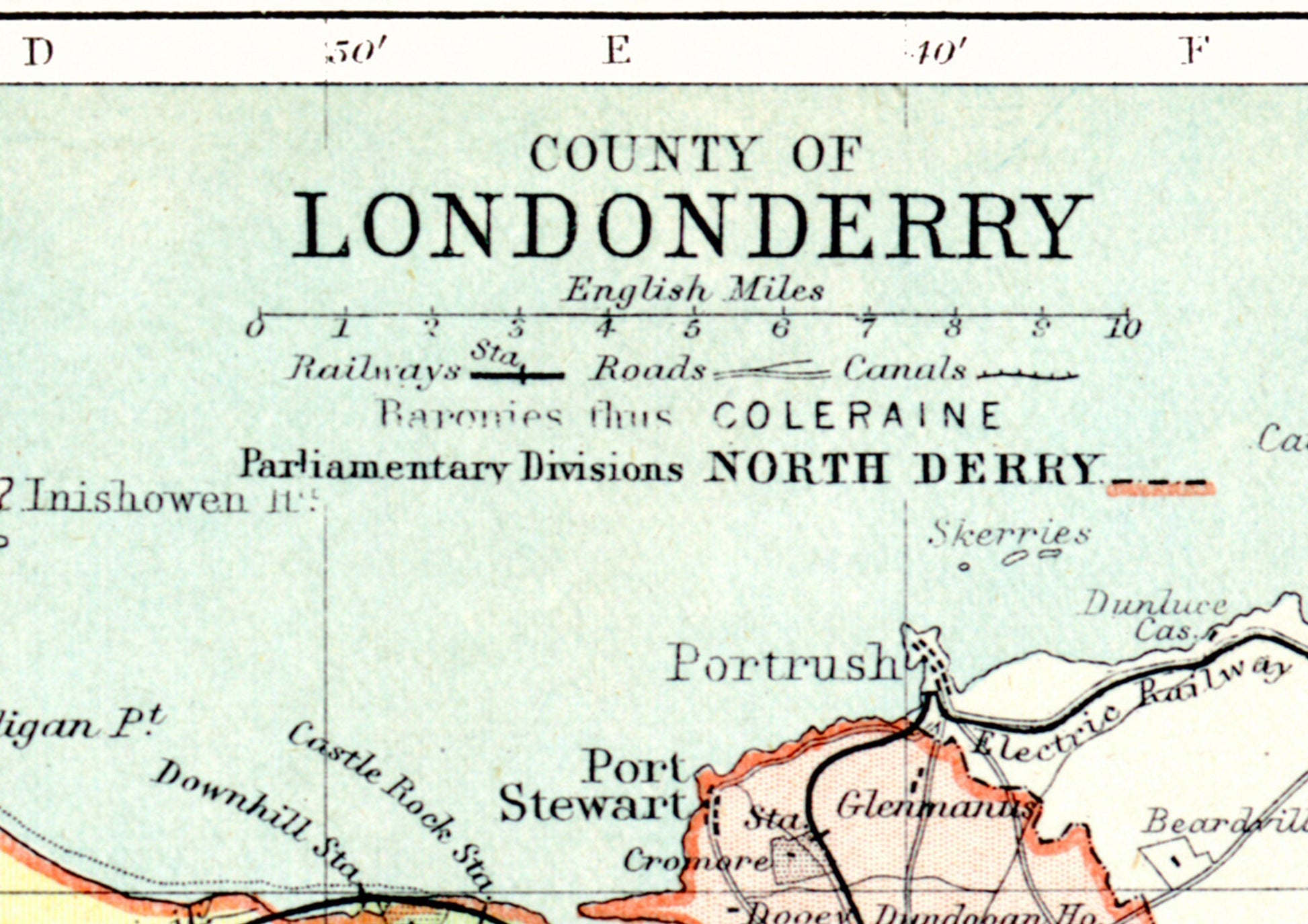The County of Derry/Londonderry is located in the north east of Ireland in the province of Ulster and has neighbouring counties of Tyrone and Antrim.