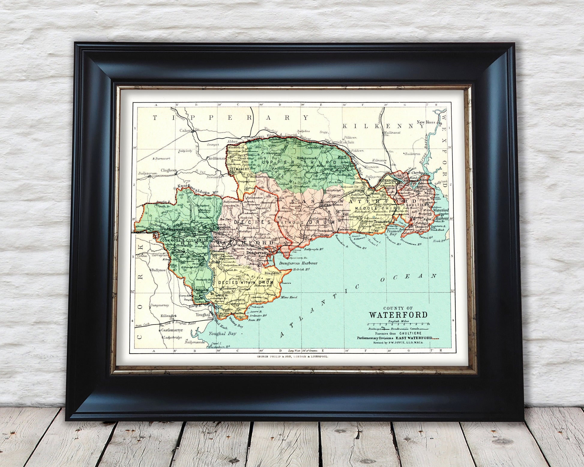 County WATERFORD reproduction Irish Map 1897 by J Bartholomew