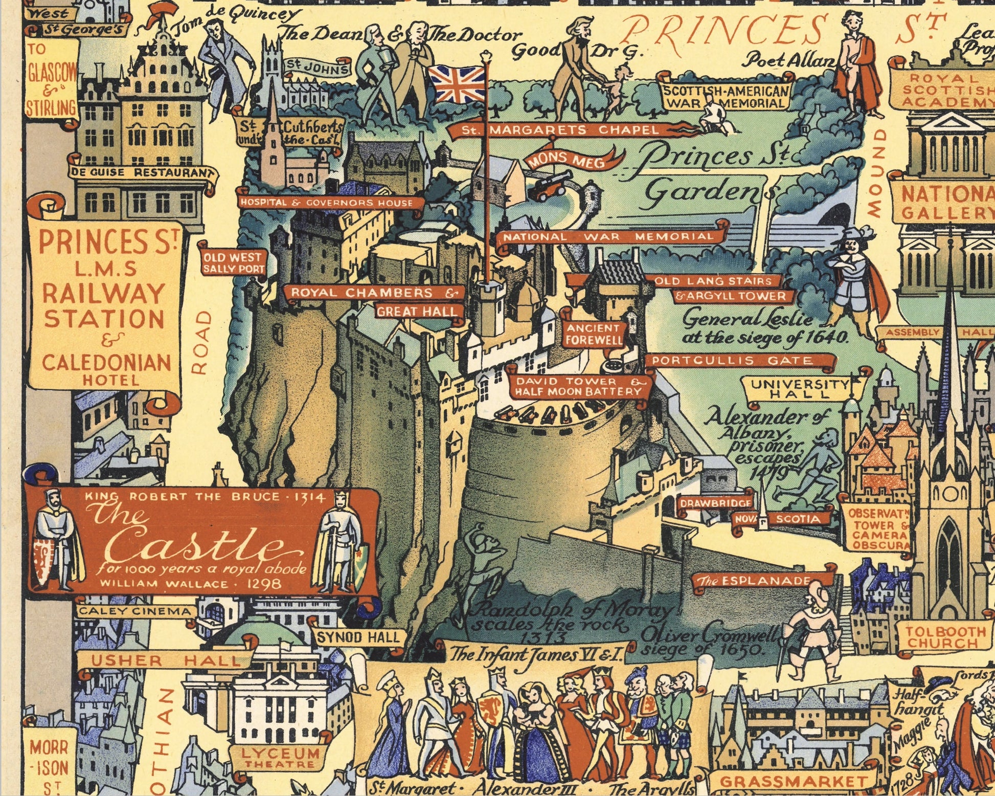 • A very detailed, fun pictorial map of the central area of Edinburgh with the Castle, Parliament House and the Palace of Holyrood house