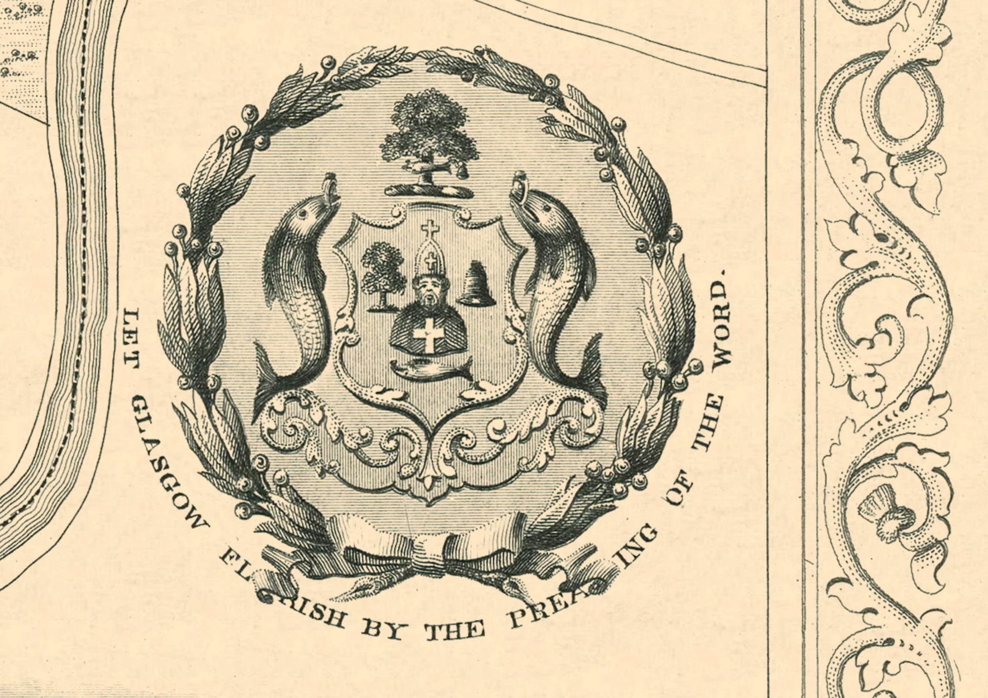 • Six wonderful vignettes towards the edges of the map including The Royal Exchange, The Royal Bank of Scotland, View of Glasgow from the Green, and Glasgow Cathedral (High Church)