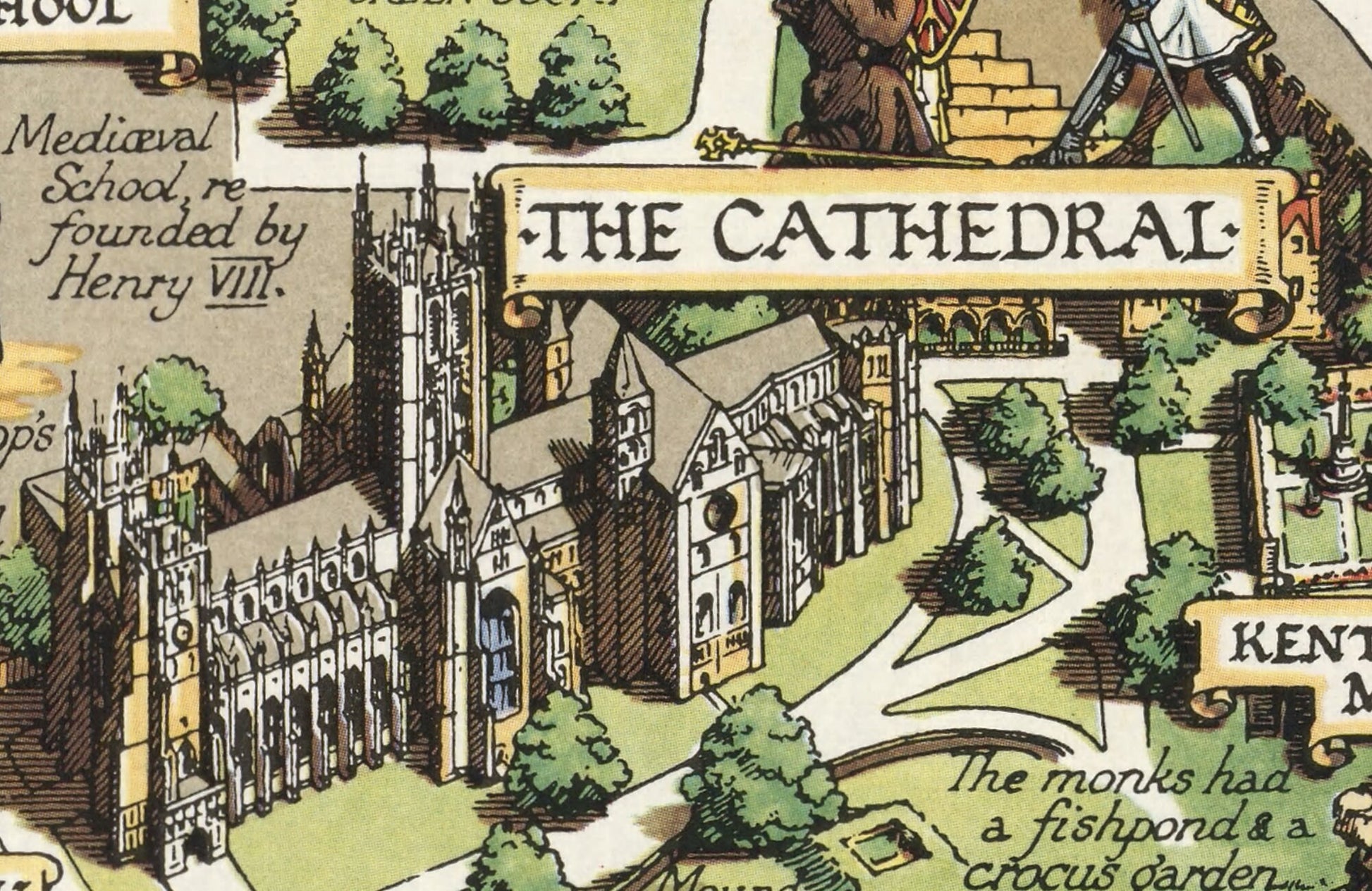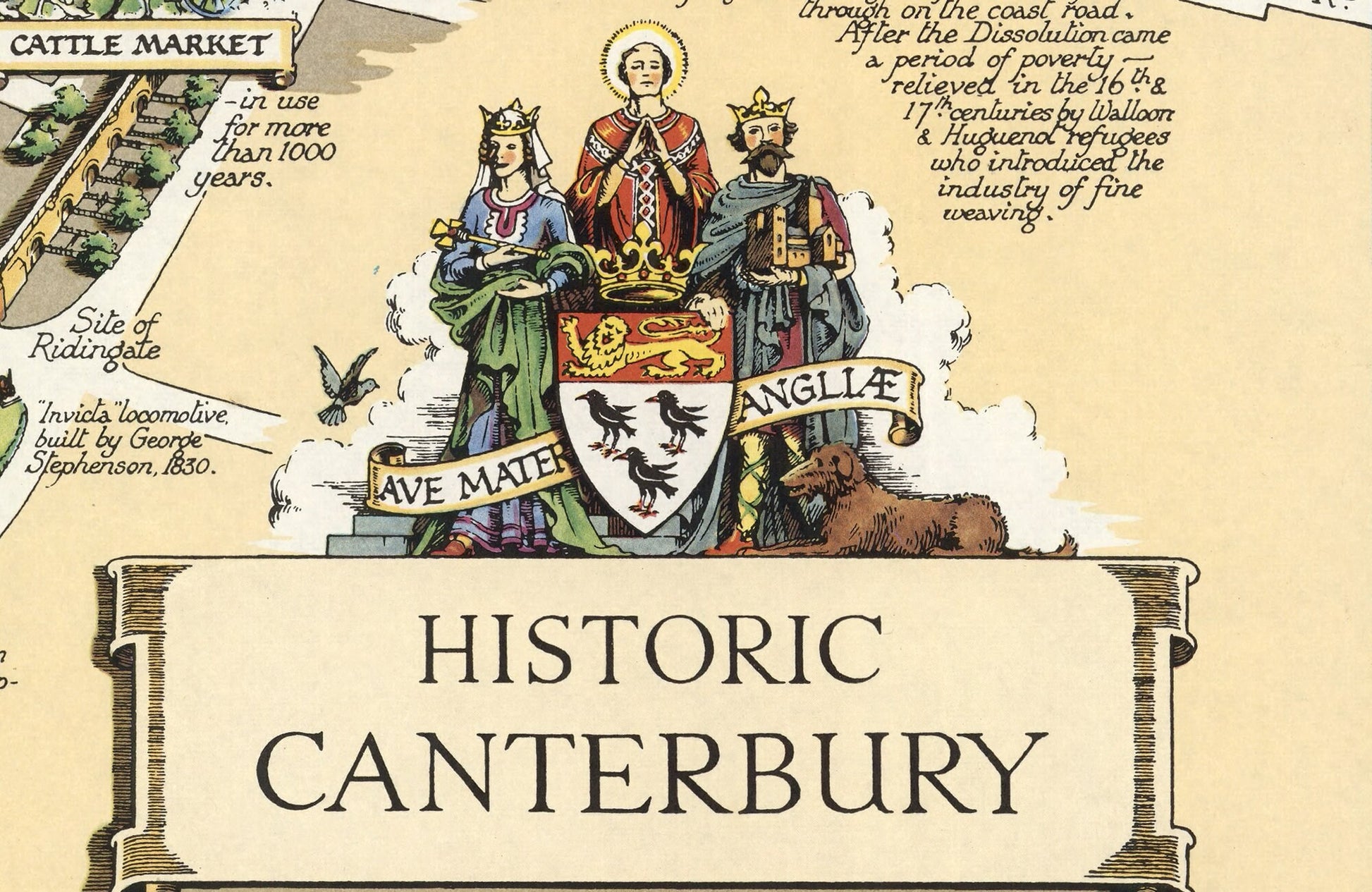 Historic CANTERBURY Map, 1952 by Estra Clark, pictorial map