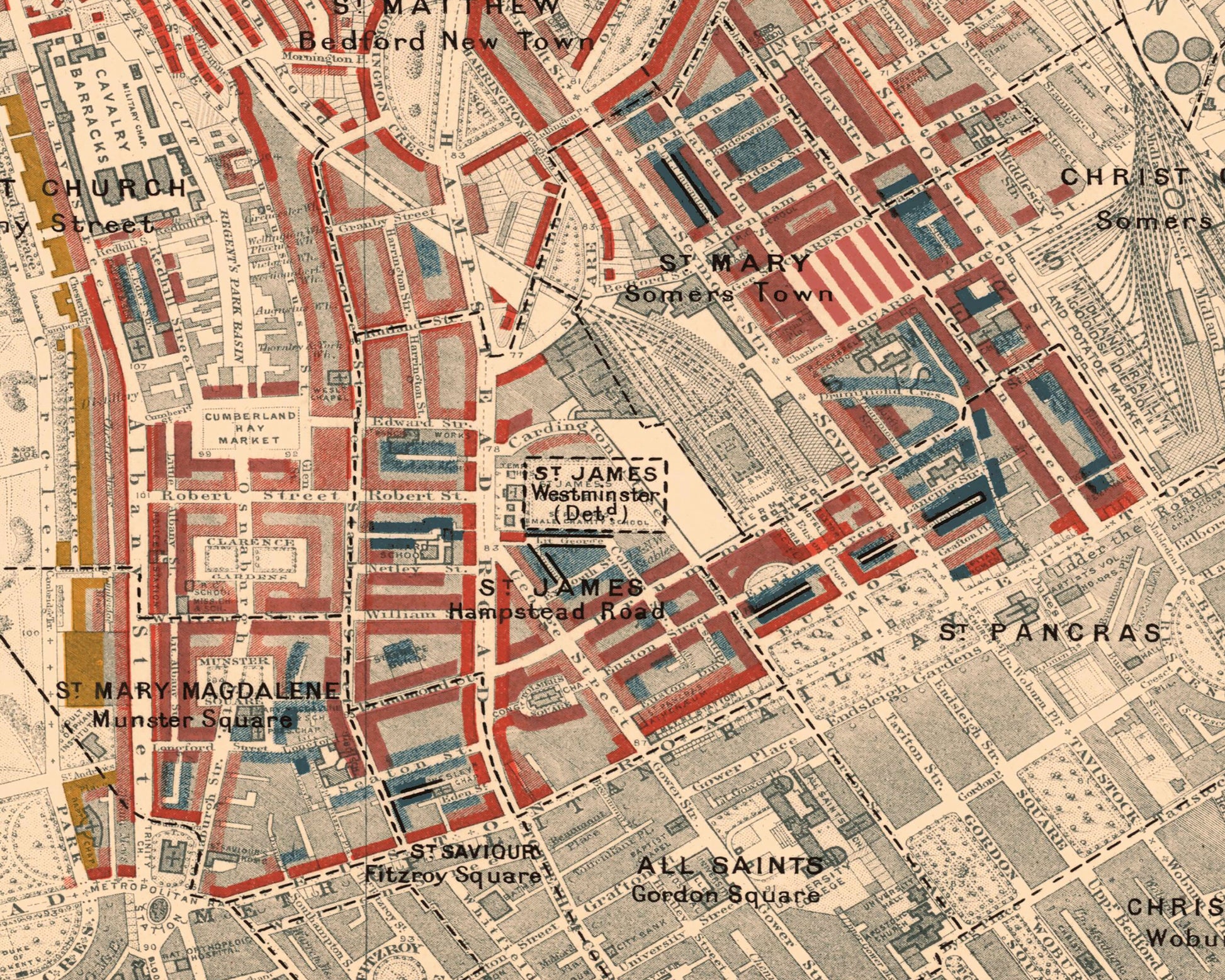 LONDON poverty Map Marylebone Hampstead St Johns 1898 Charles BOOTH