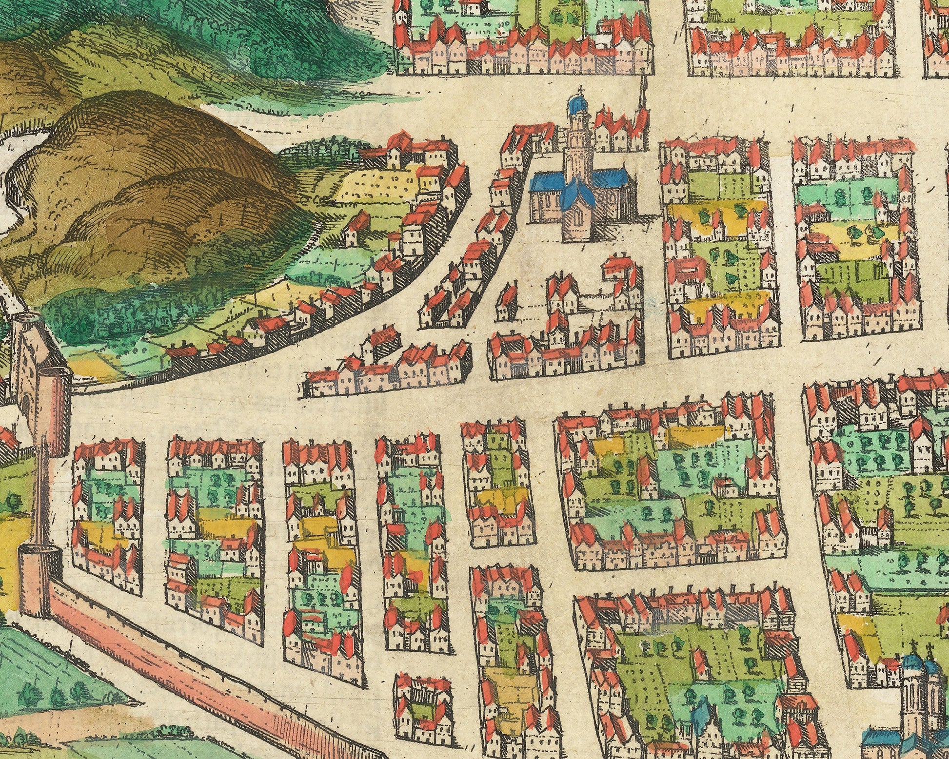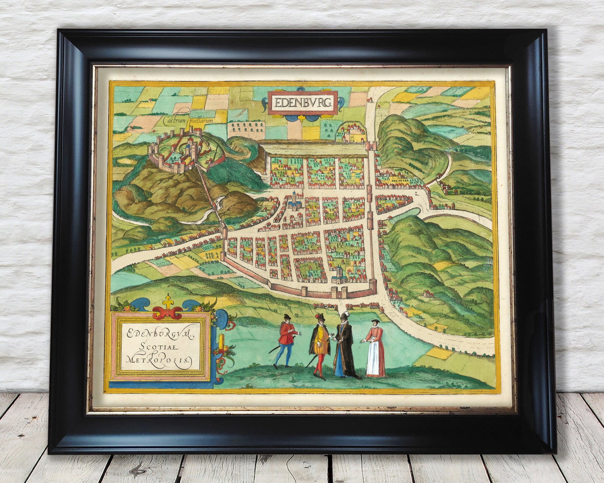 This superb map of Edinburgh was produced by Georg Braun and Frans Hogenberg in 1580. Taken from their Civitates Orbis Terrarum - the Cities of the World - this was one of over 500 such masterpieces. This particular example has been hand coloured and captures Scotland's capital in a vibrant style. Who better to describe this map than Braun himself.