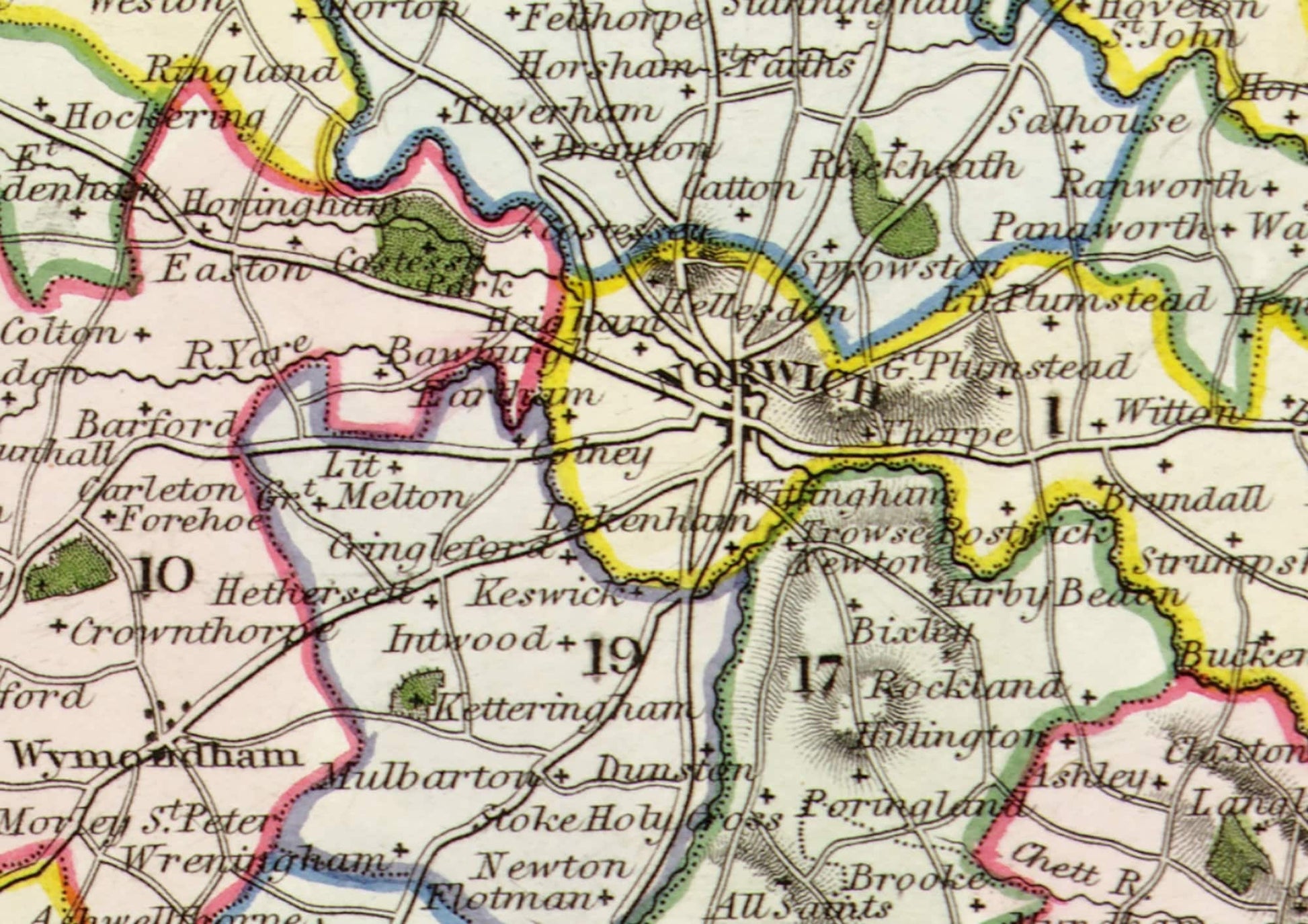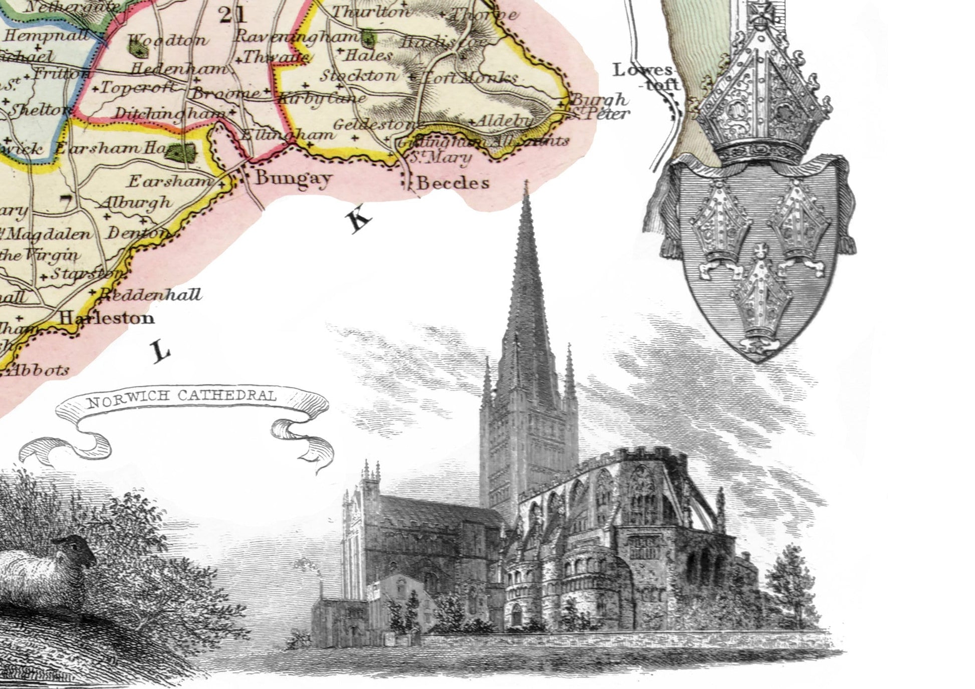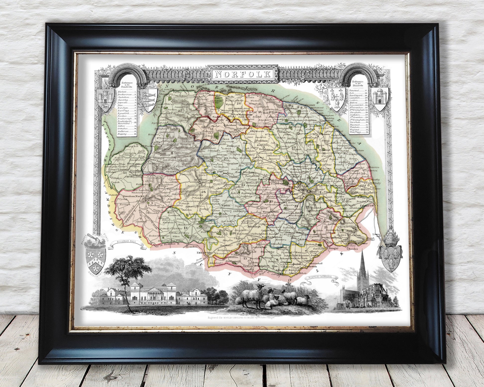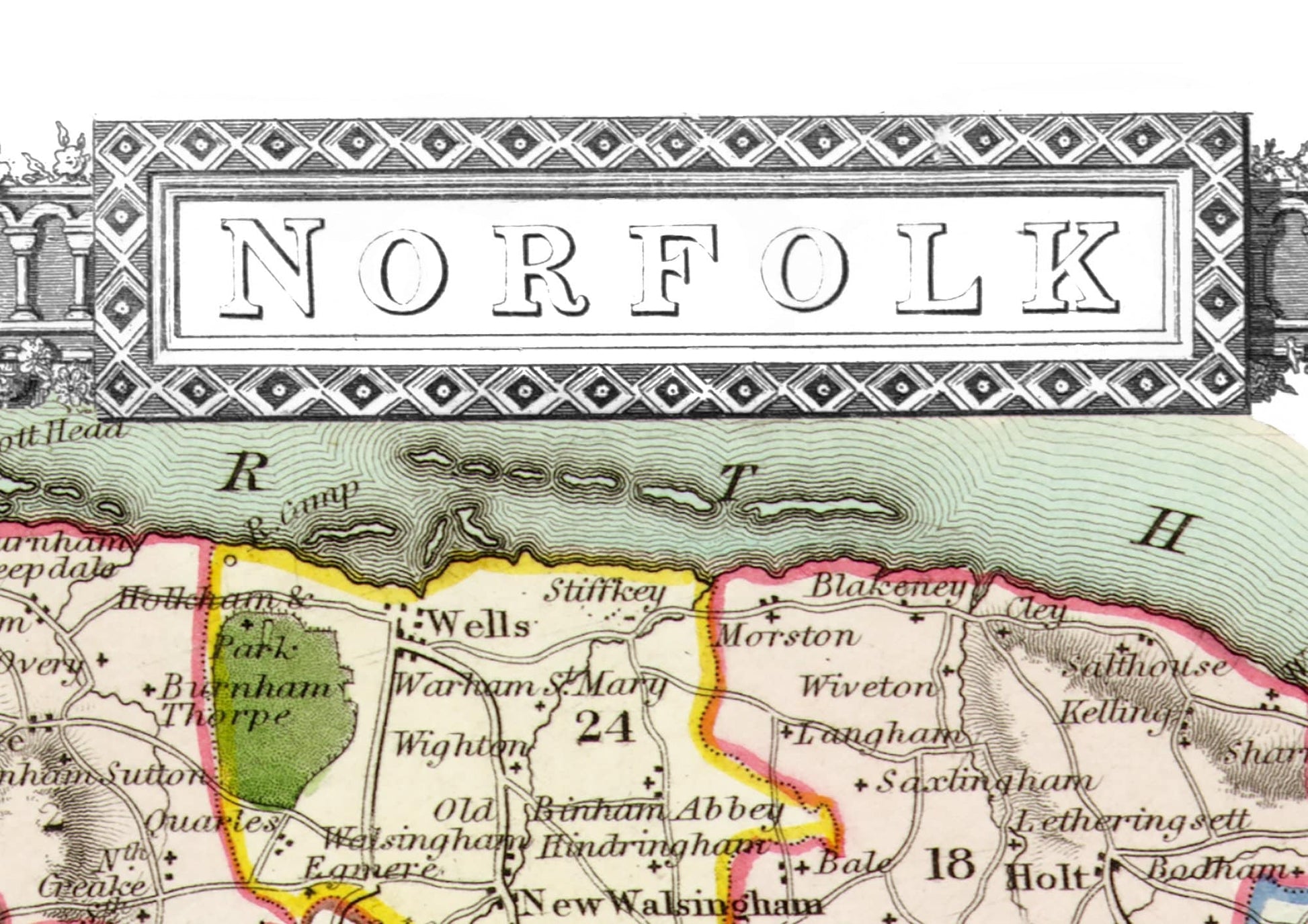 Reproduction vintage Norfolk map by Thomas Moule 1837 part of the Moule's English Counties Series