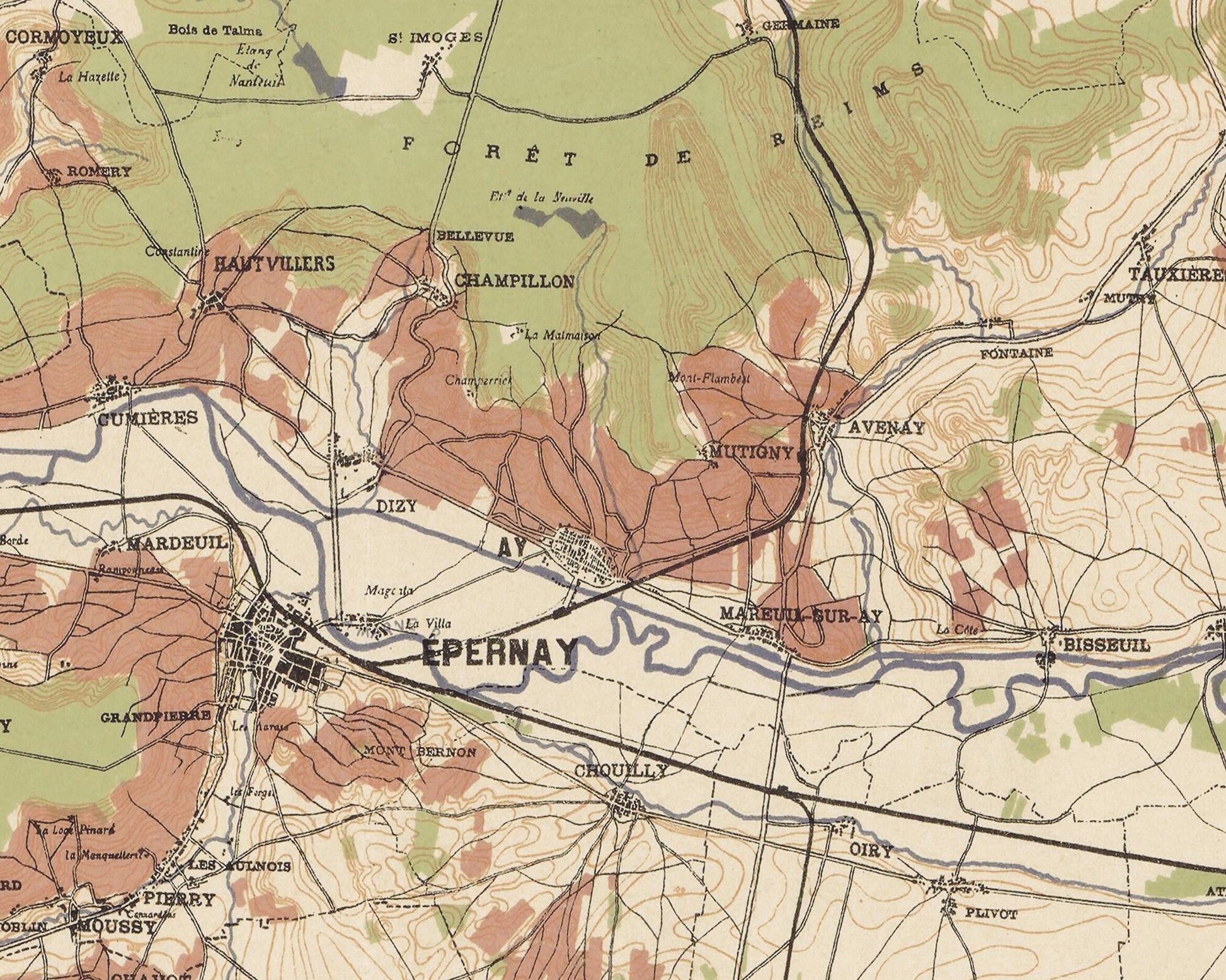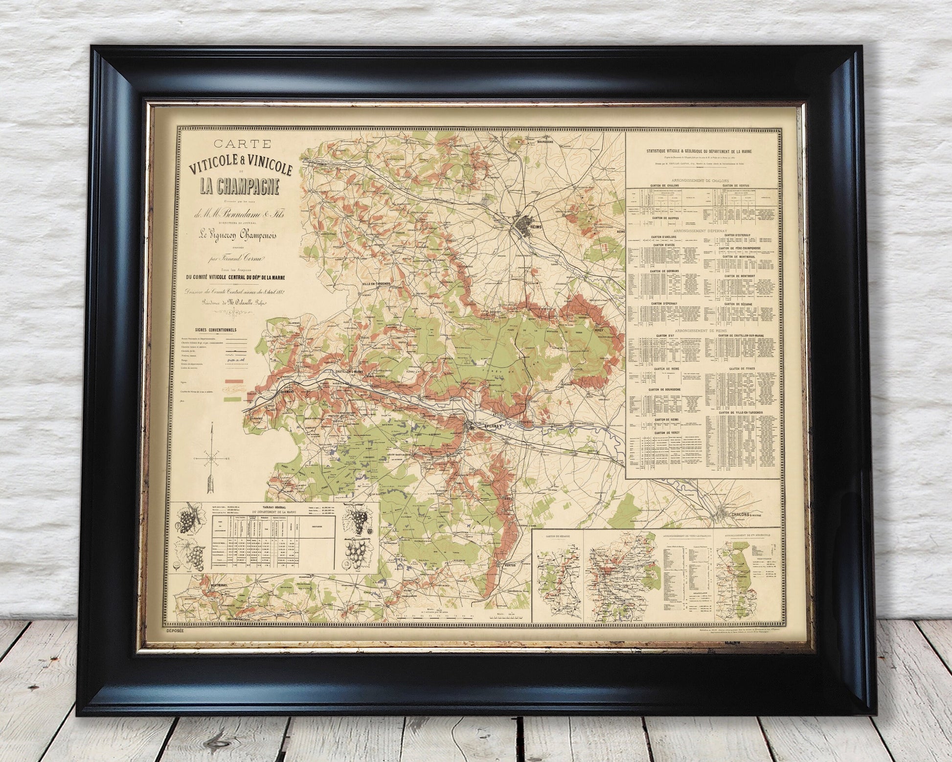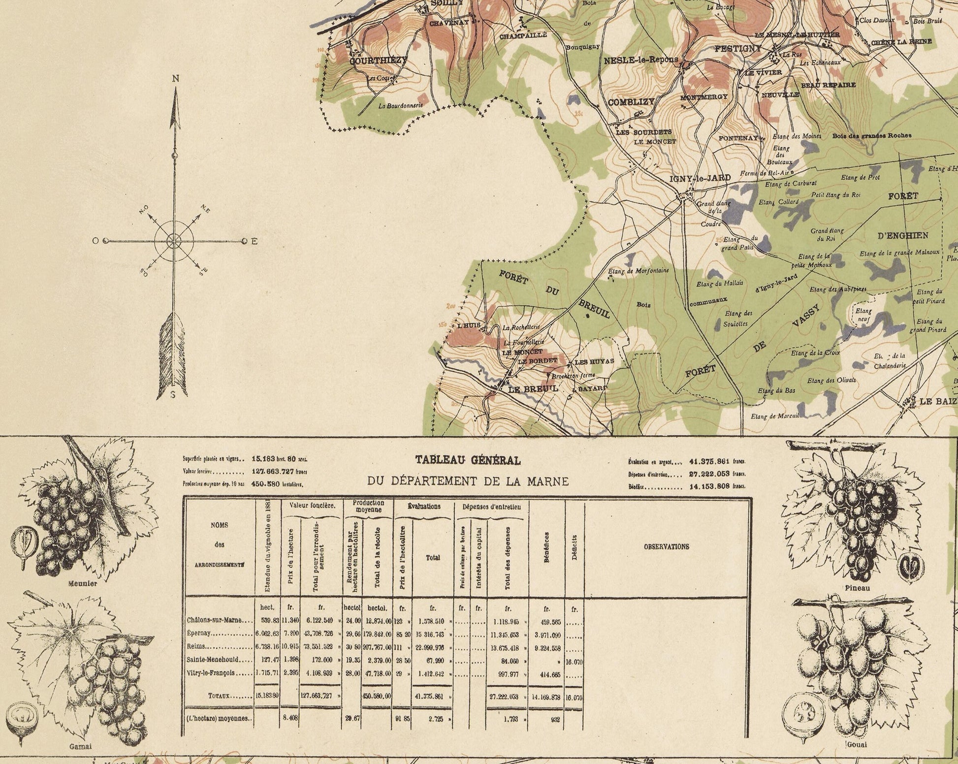 Old CHAMPAGNE Map 1882, wine map, vinicole and winemaking