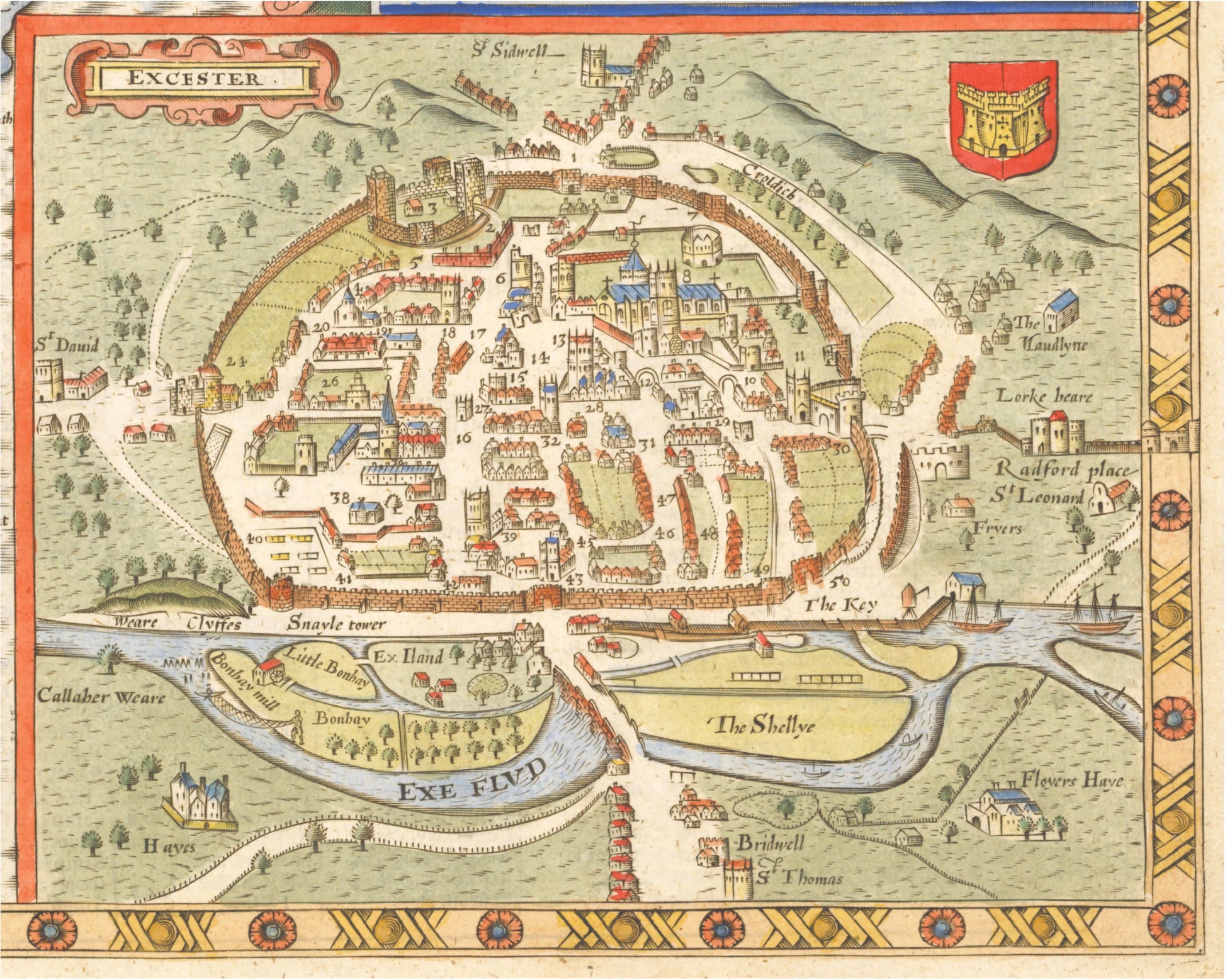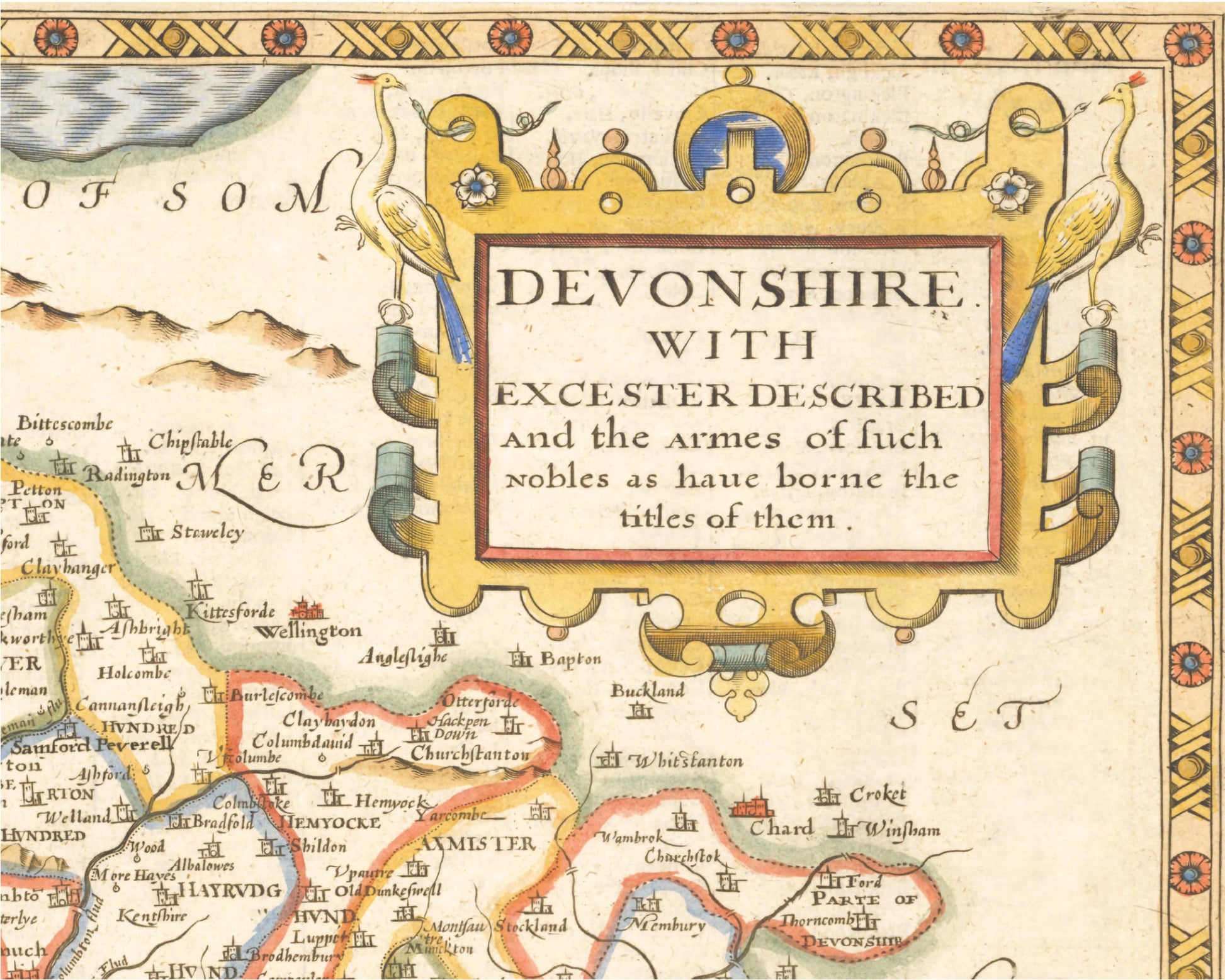 • A superb inset map of the county town of Exeter (Excester) including an index of places of interest