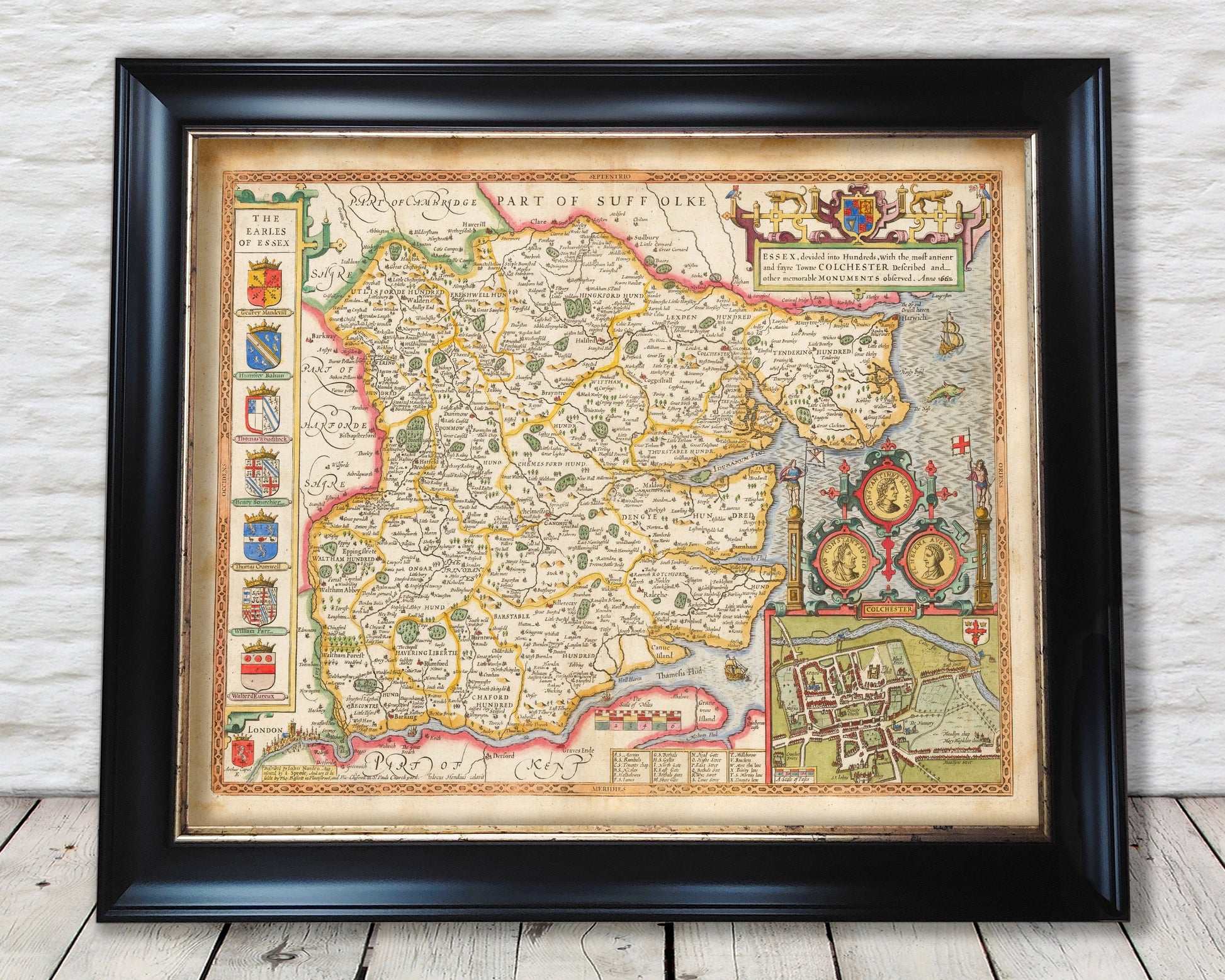 Old ESSEX map John Speed 1610 Southend Romford Colchester Chelmsford