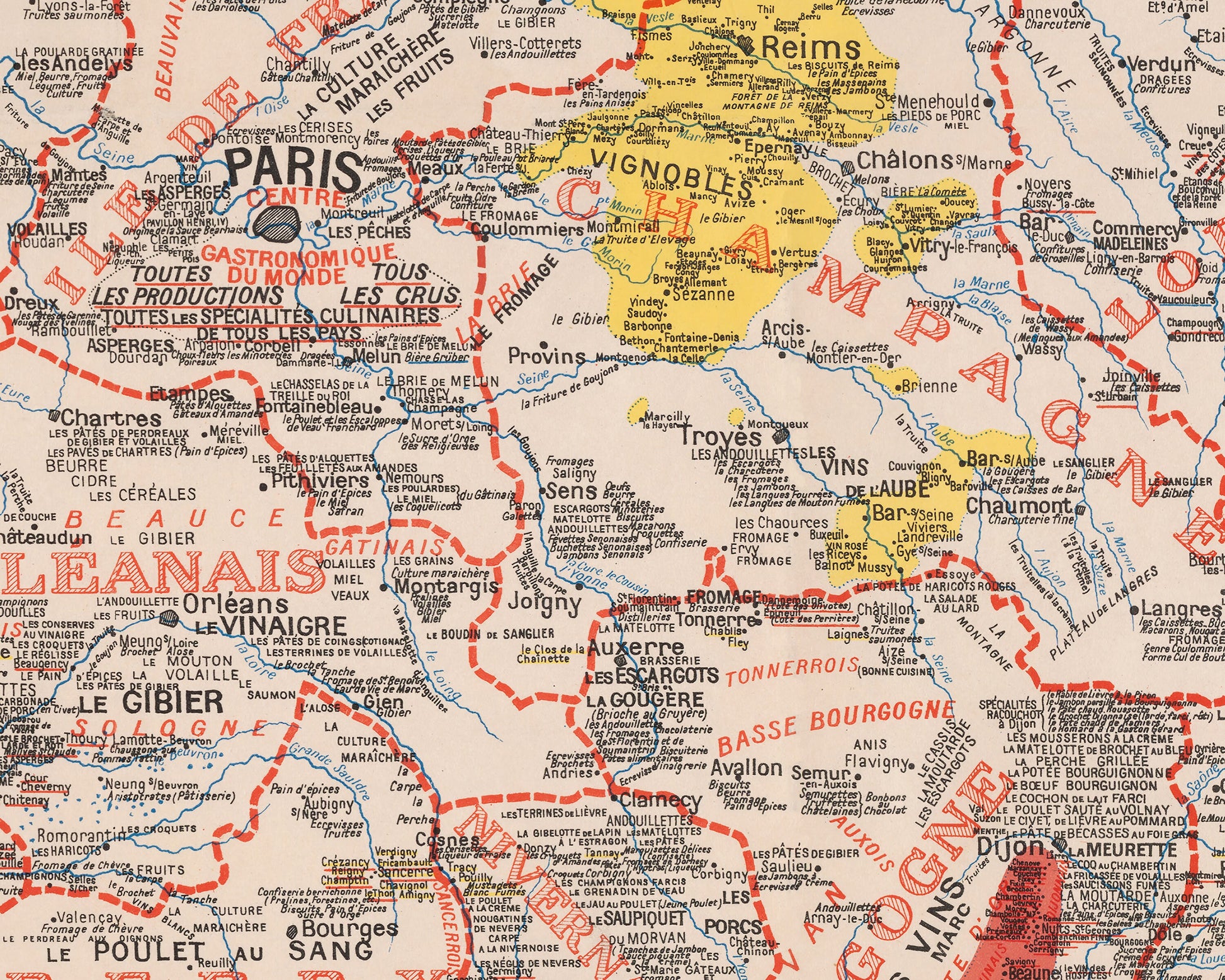 Old GASTRONOMIC Map of FRANCE by Alain Bourguignon Paris Bordeaux