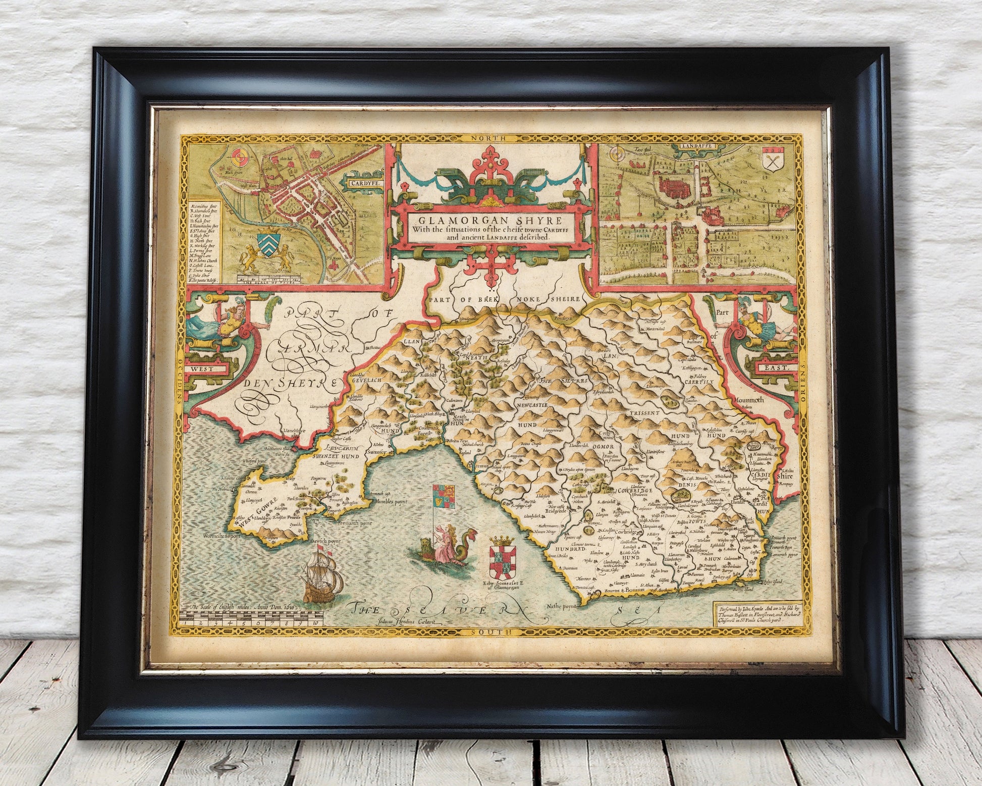 Old GLAMORGAN map by John Speed 1611 Cardiff Swansea Neath Bridgend