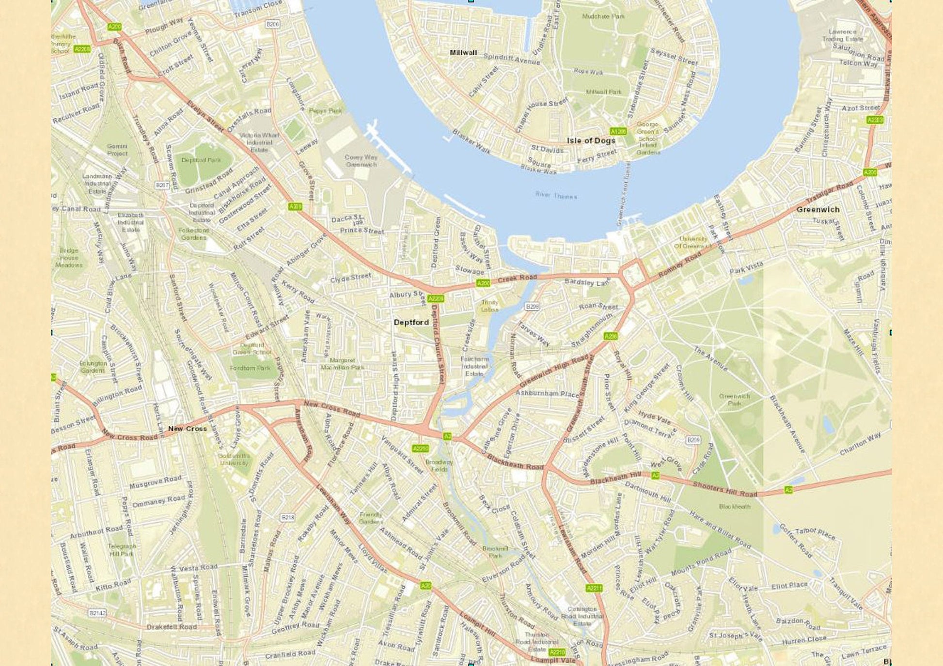• A highly accurate and stylish rendition of Greenwich, Deptford, Millwall and Blackheath districts - see image 2 above for modern day equivalent area covered