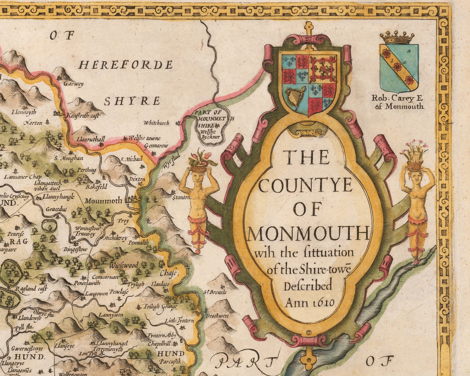 Old MONMOUTHSHIRE map John Speed 1611 Monmouth Abergavenny Chepstow