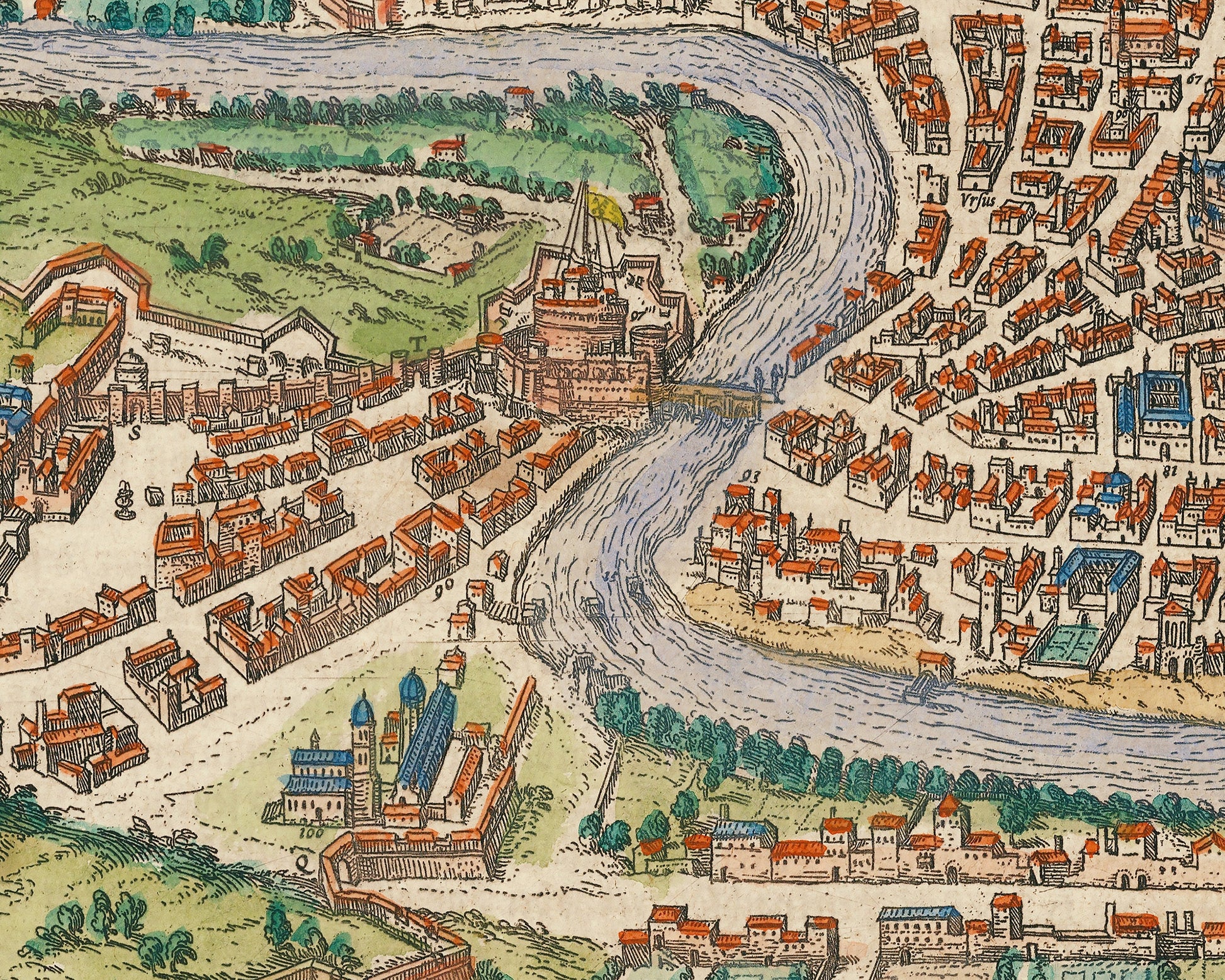 Old ROME map 1572 by Braun & Hogenberg - Vatican, Colosseum, Vatican