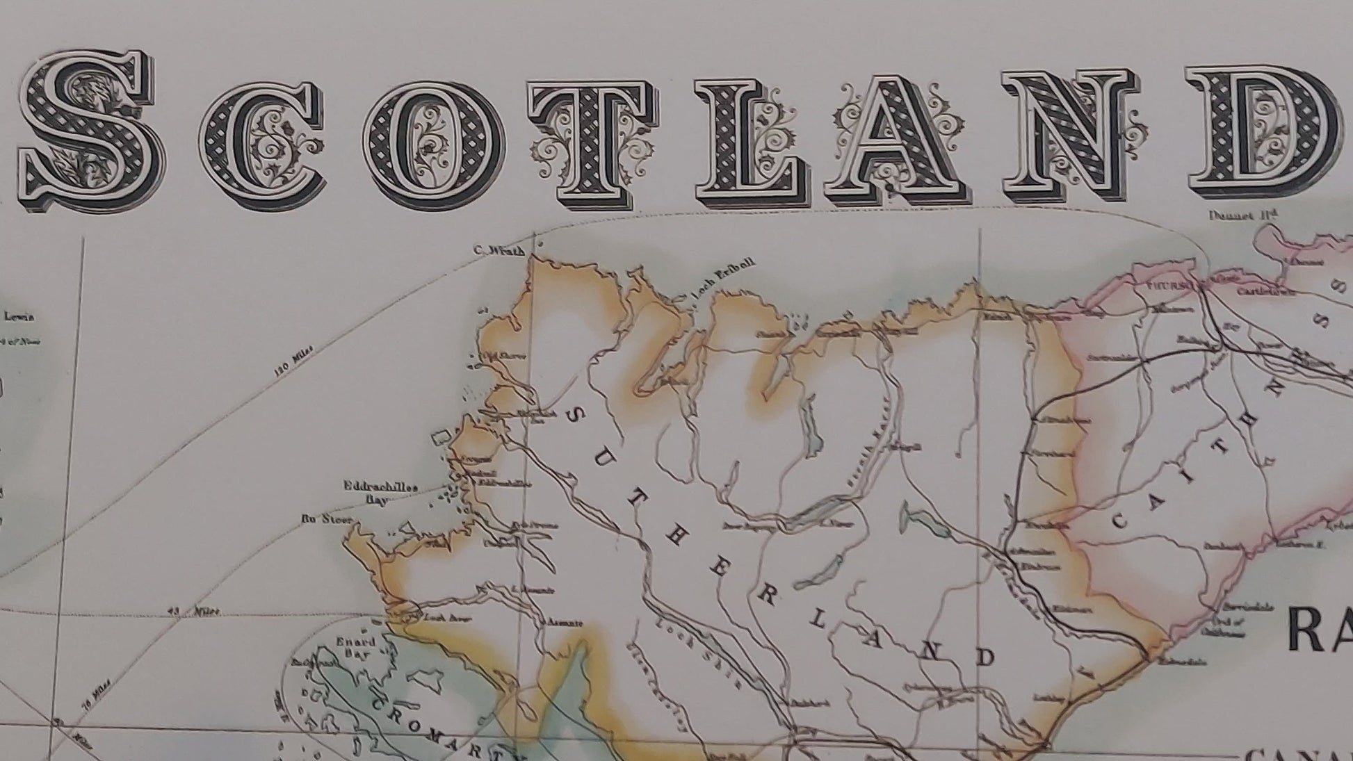 I would suggest that if you are wanting the map for research purposes to purchase the 32"x24" map as some place names and the Glasgow and Edinburgh maps are difficult to decipher at the smaller sizes. If you are wanting the map more for decorative purposes then the 20x16 print is ideal, larger place names are legible and this is a lovely bright print.