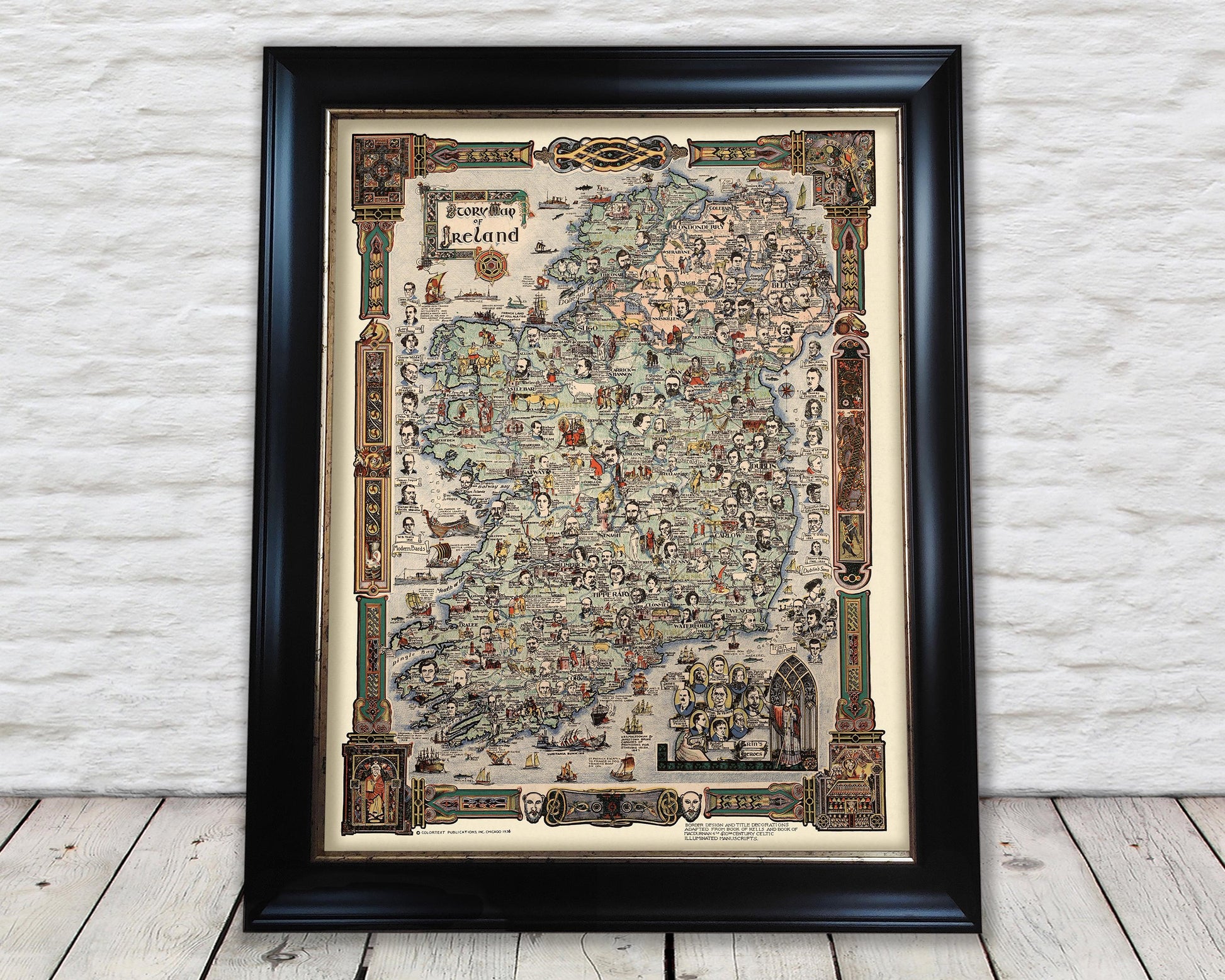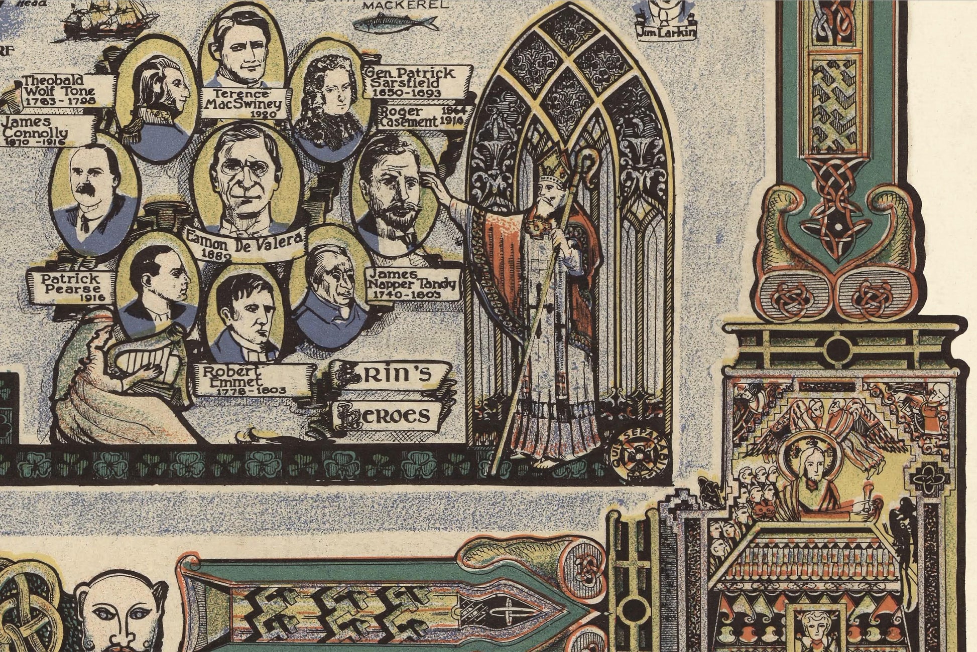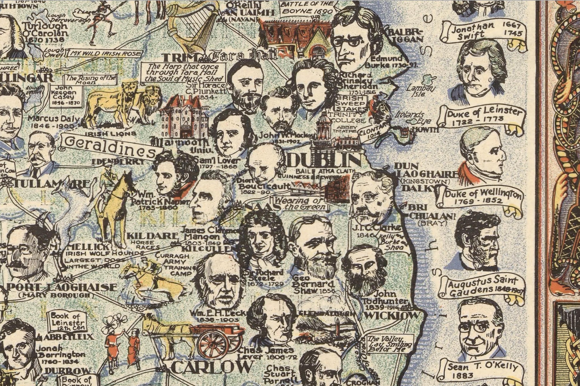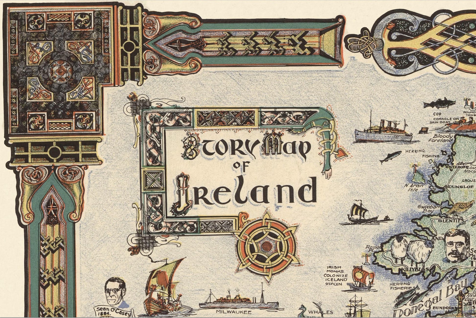 Pictorial Story Map of Ireland 1936 - Dublin, Belfast, Joyce, Wilde