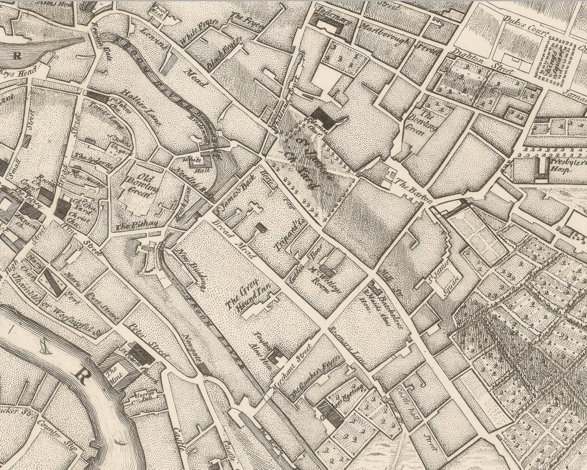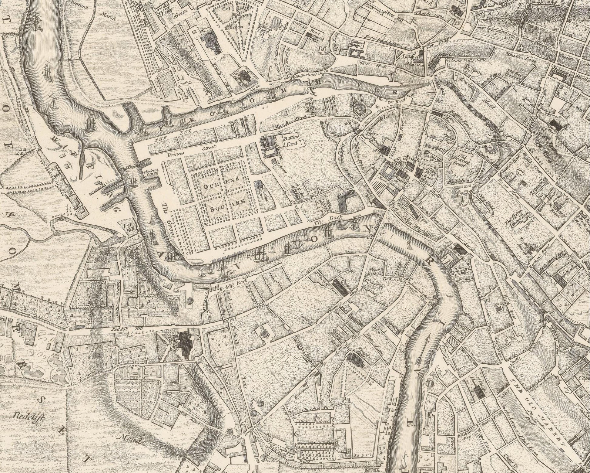 This Old Bristol map is yet another classic from the esteemed cartographer John Rocque who surveyed, drew and published this map in 1750