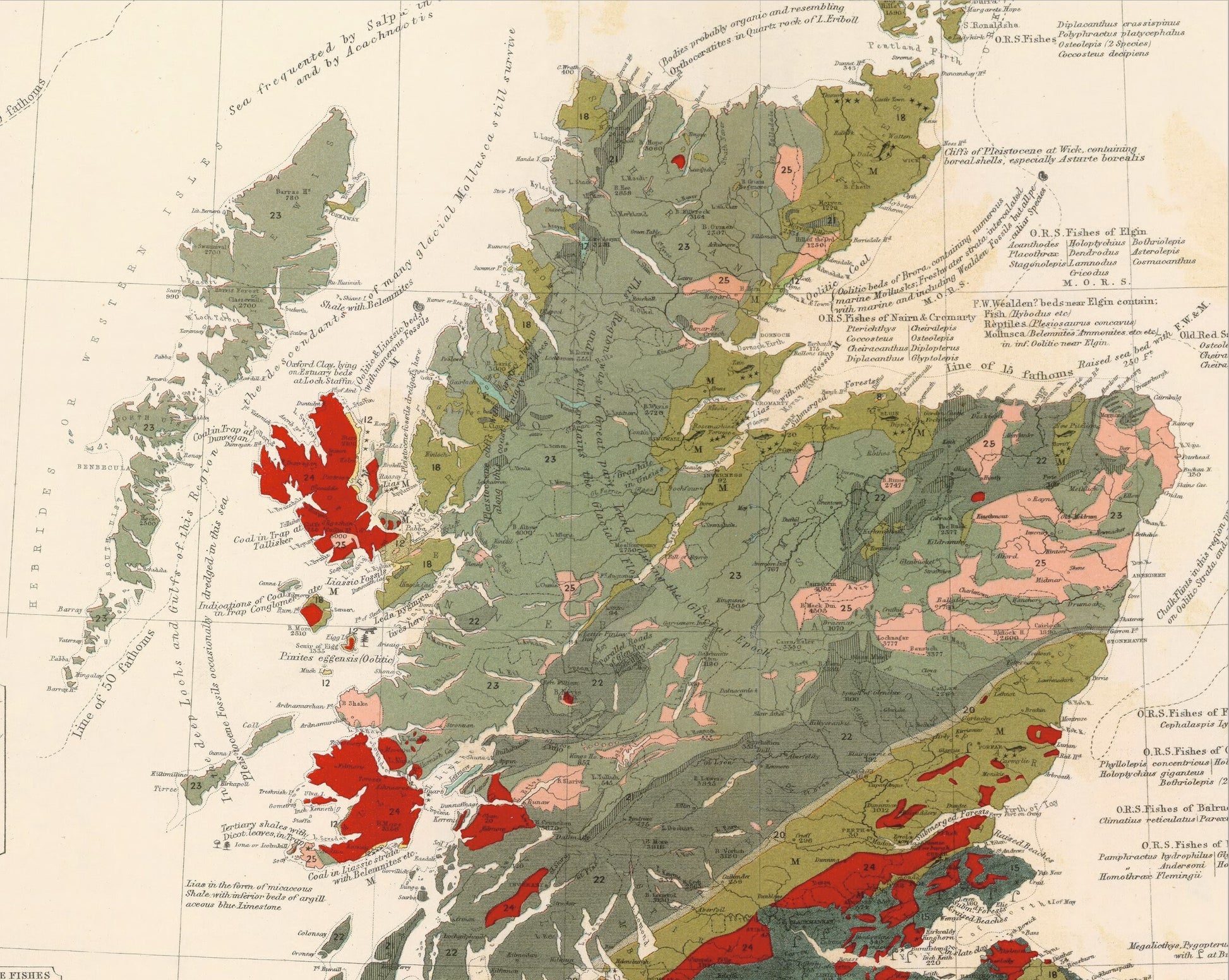 SCOTTISH GEOLOGY & Palaeontology Map W and A Johnston Fossils Dinosaurs