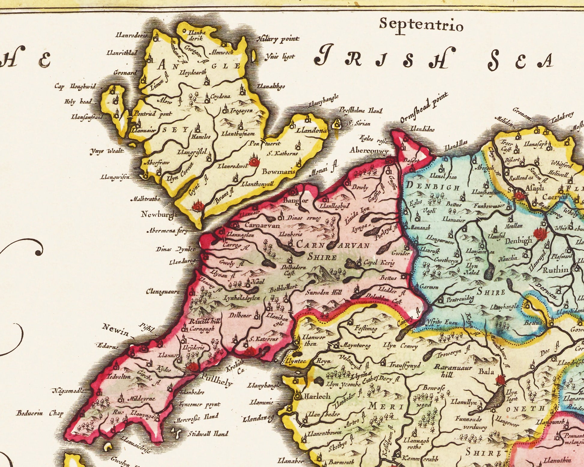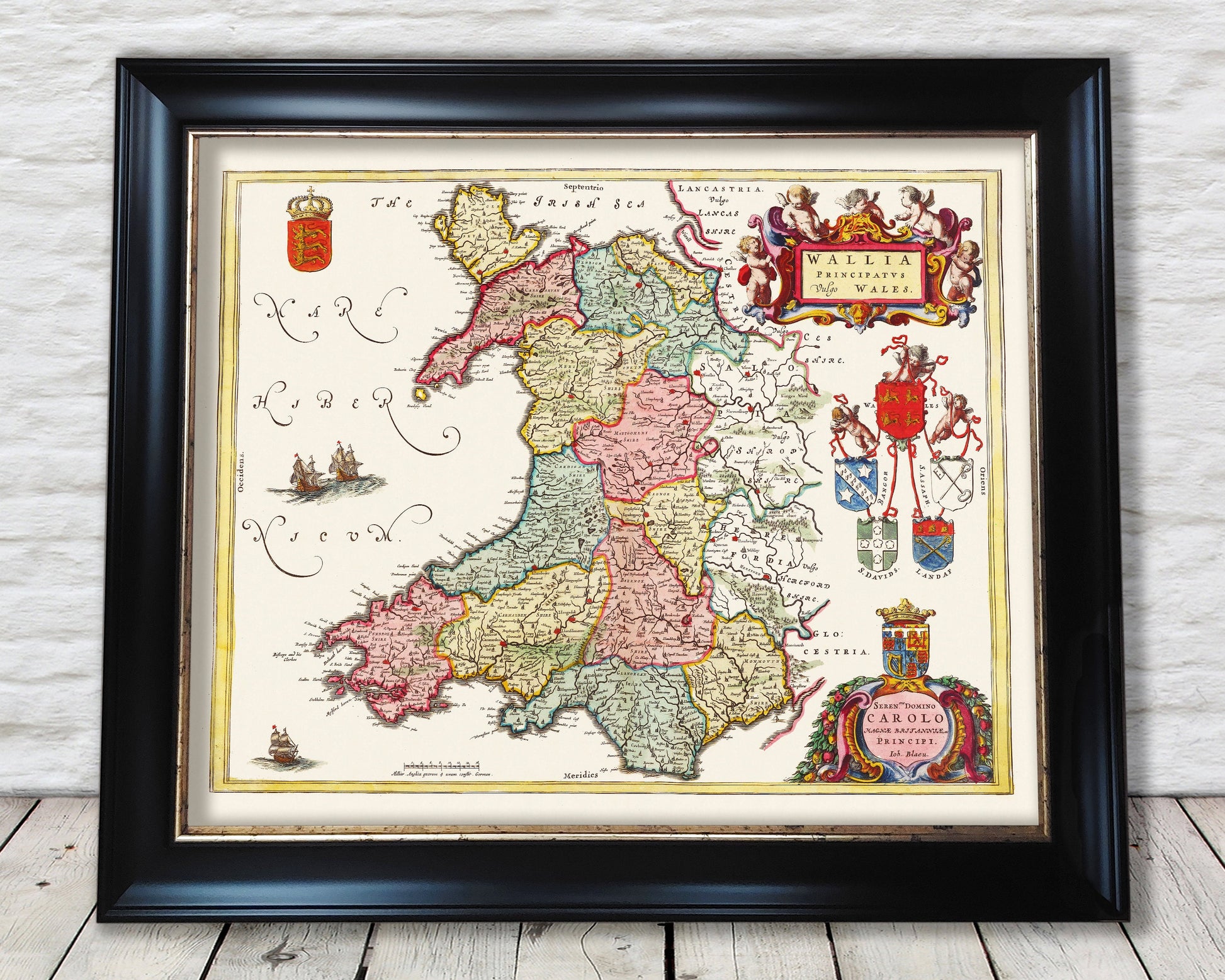 This stunning map of Wales was produced by one of the finest map makers of the time Dutch born Joan Blaeu (1596-1673) of the renowned Blaeu cartographer family.