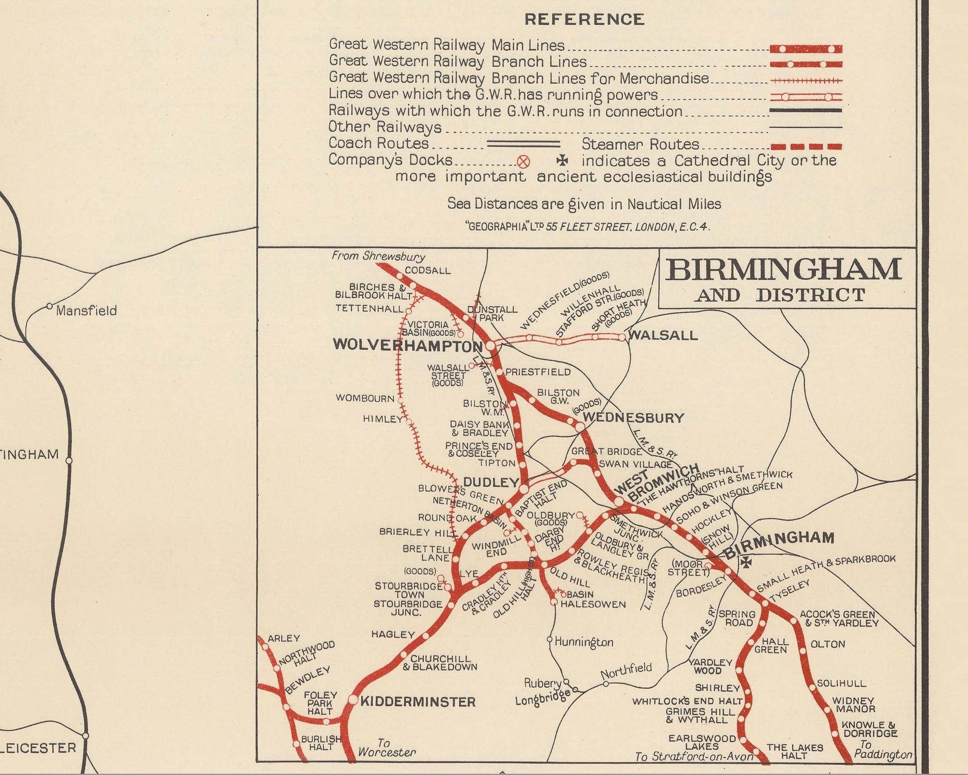 This superb colour map of the Great Western Railway was published by Geographia Limited in 1950. Upon its release it was somewhat retrospective as British Railways had been formed in January 1948 by merging the former 'Big Four' railway companies. These companies were Great Western Railway (GWR); London, Midland and Scottish Railway (LMS); London and North Eastern Railway (LNER) and Southern Railway (SR).