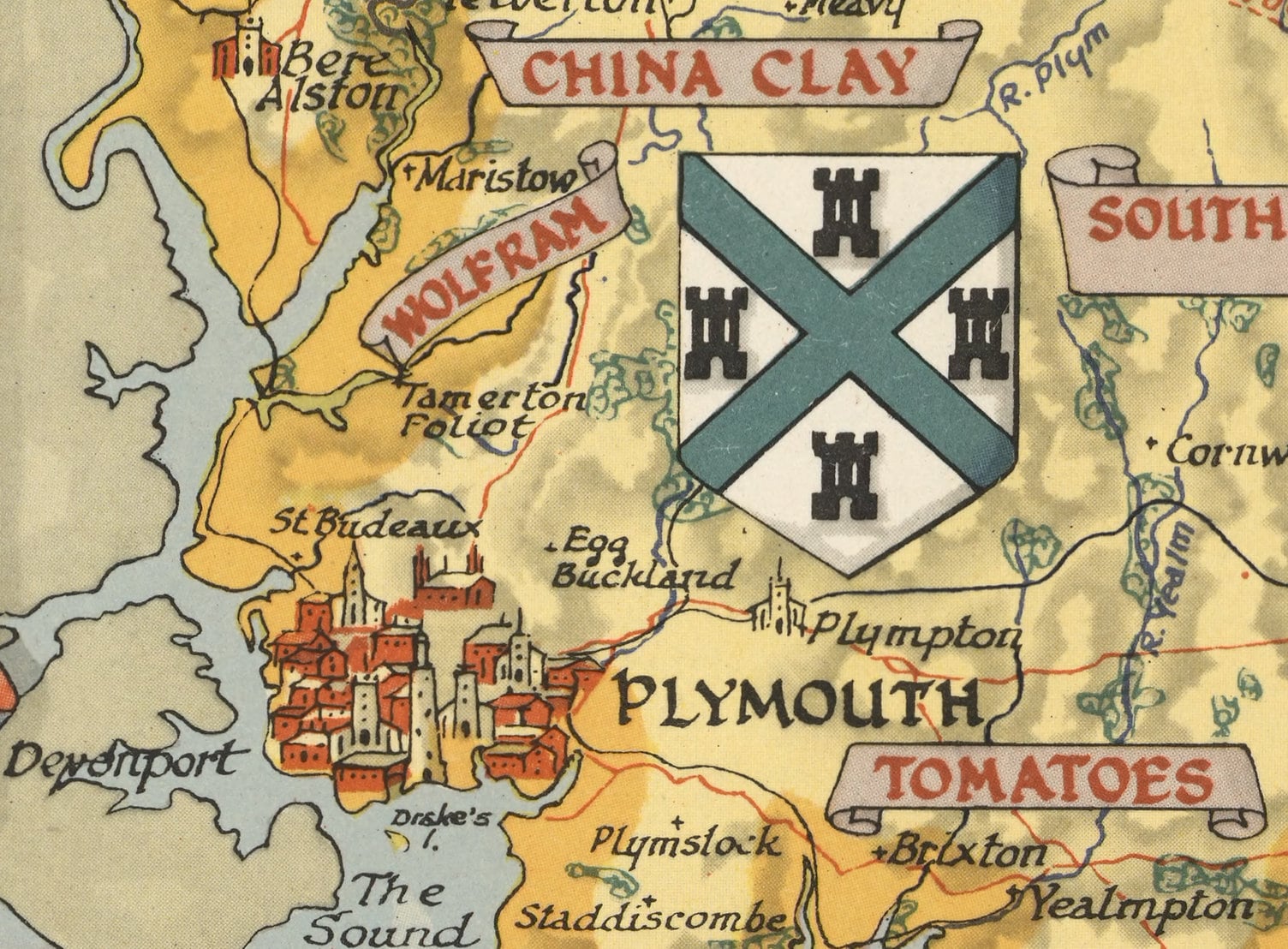 Vintage DEVONSHIRE map, 1947, Ernest Clegg, pictorial map