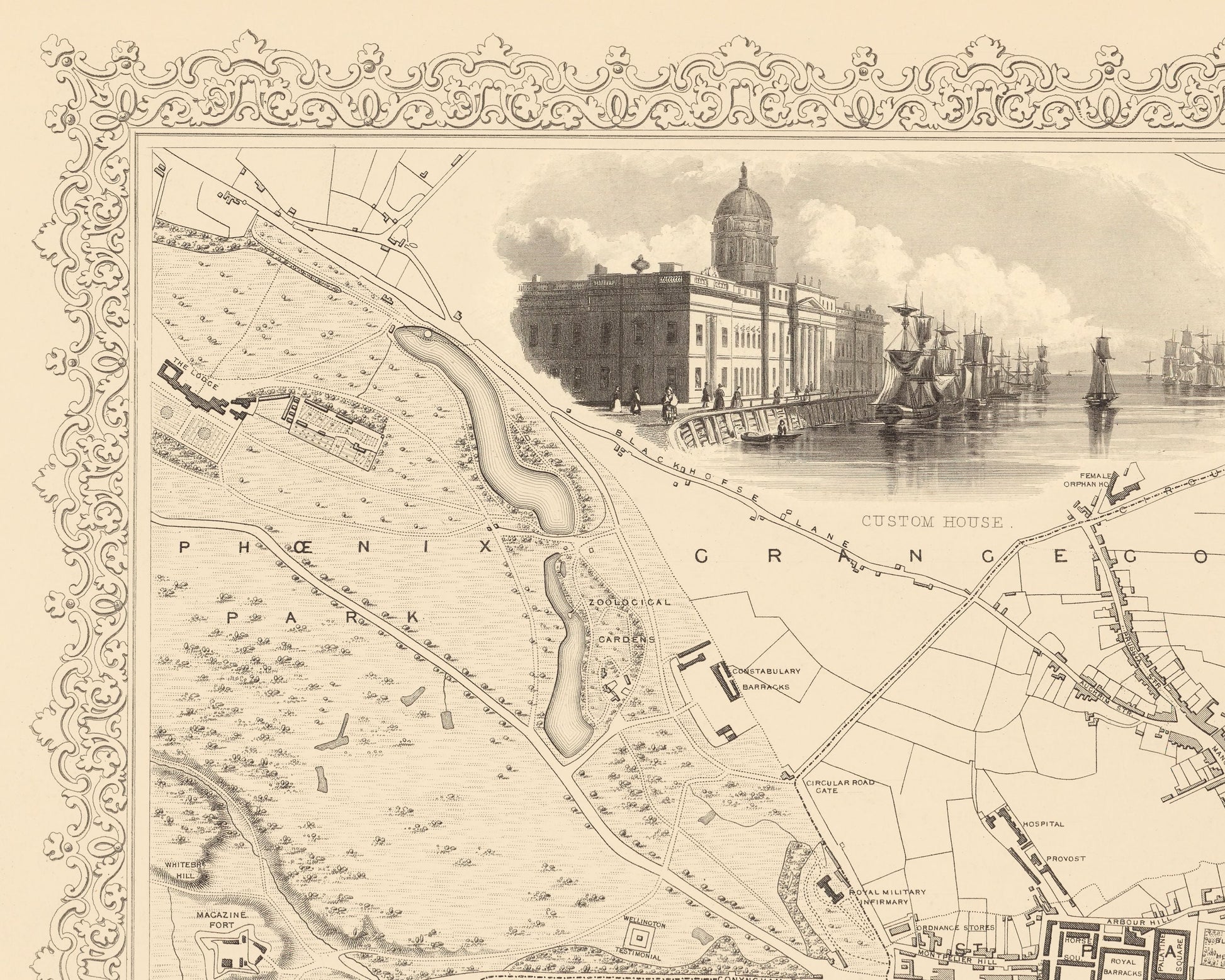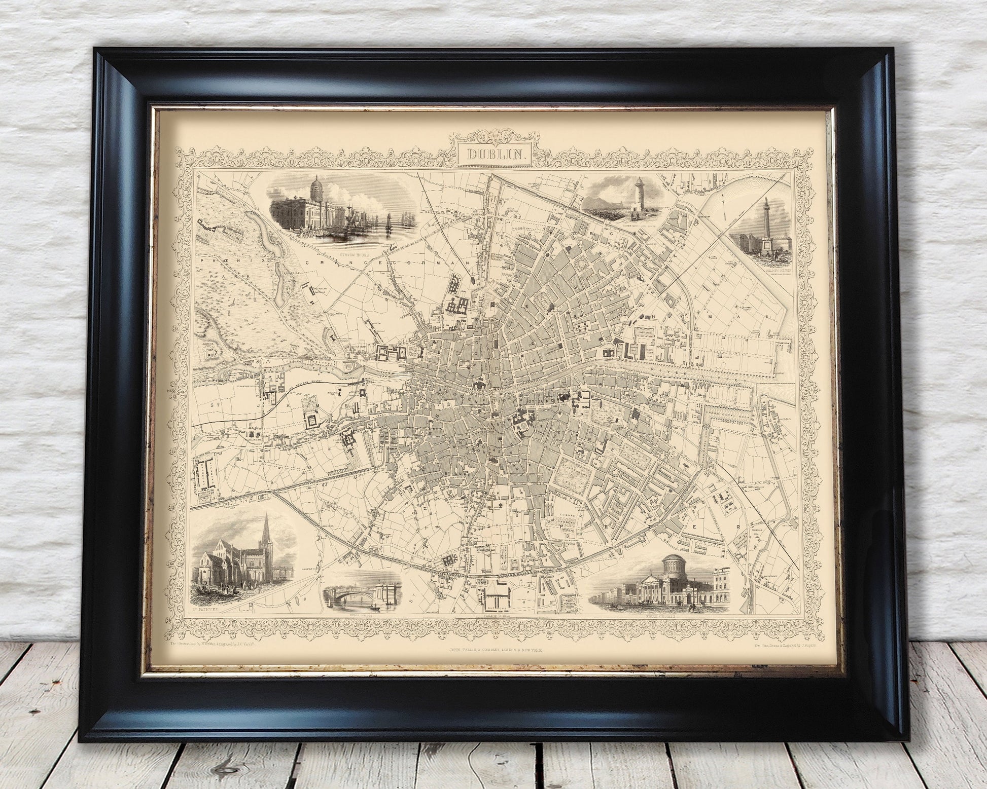 Vintage DUBLIN map c.1851 by John Tallis exceptional reproduction