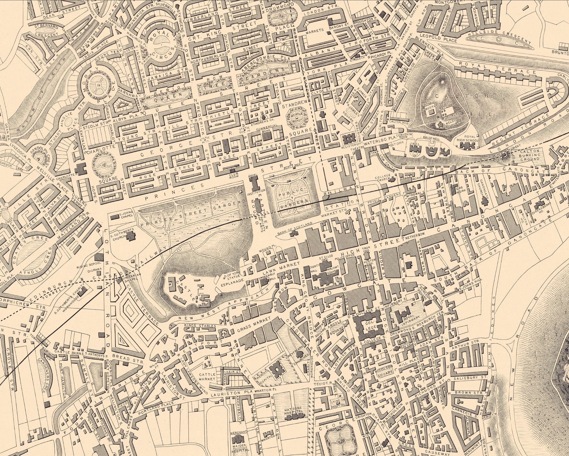 • A classically drawn and detailed town plan of Edinburgh from 1851