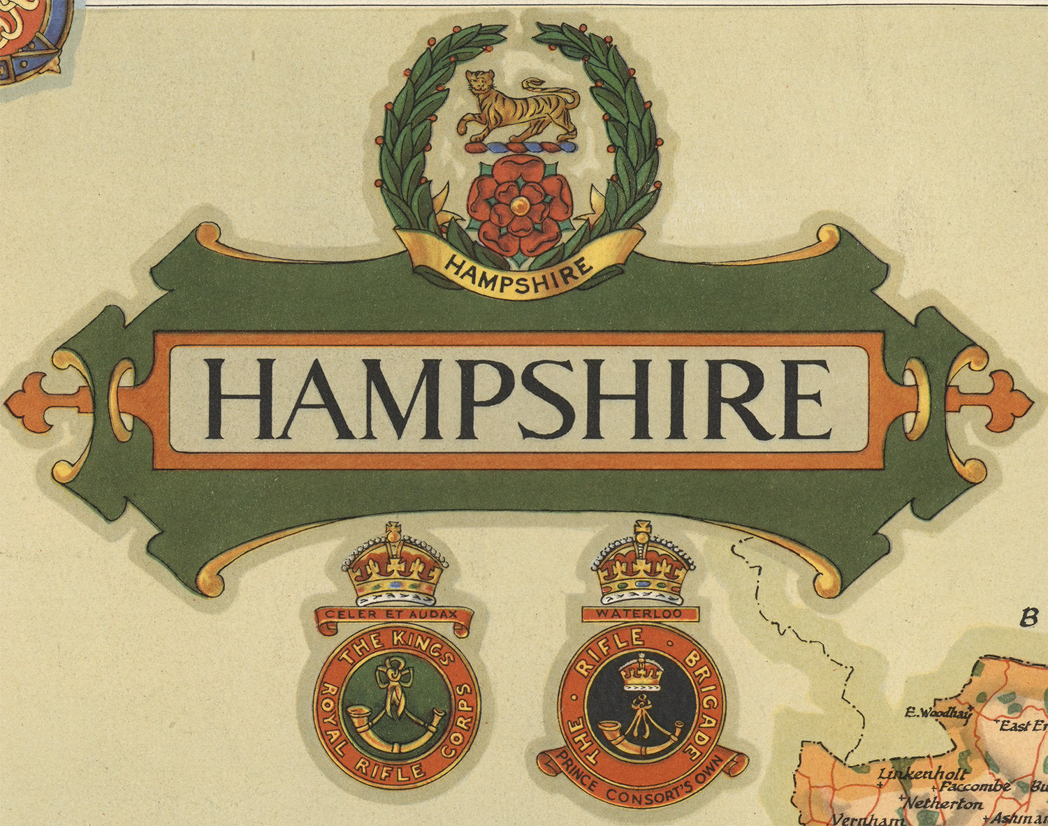 Vintage HAMPSHIRE map, 1947 by Ernest Clegg, pictorial map