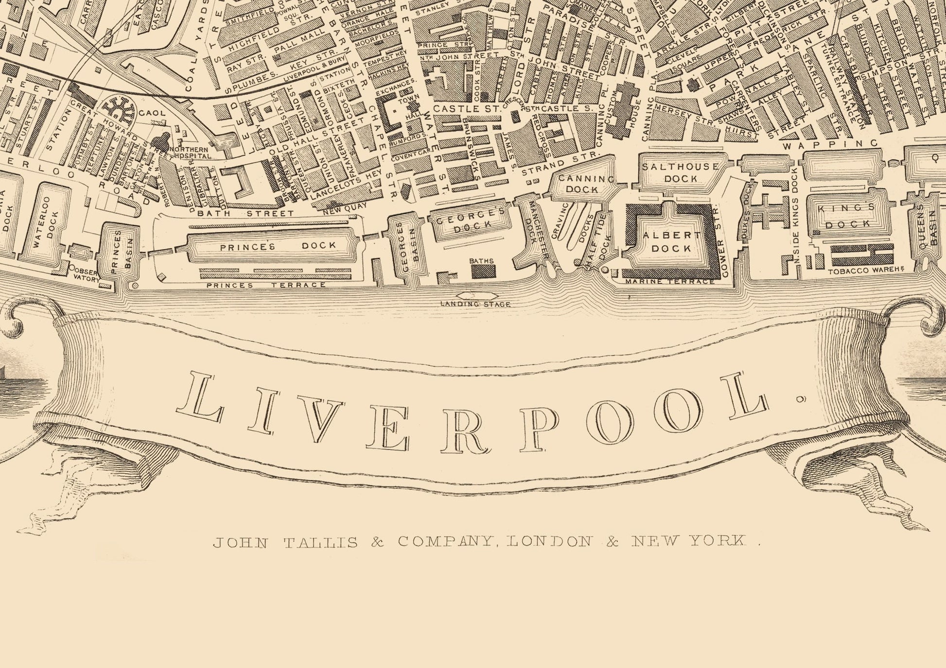Vintage LIVERPOOL map 1851 by Tallis and Rapkin