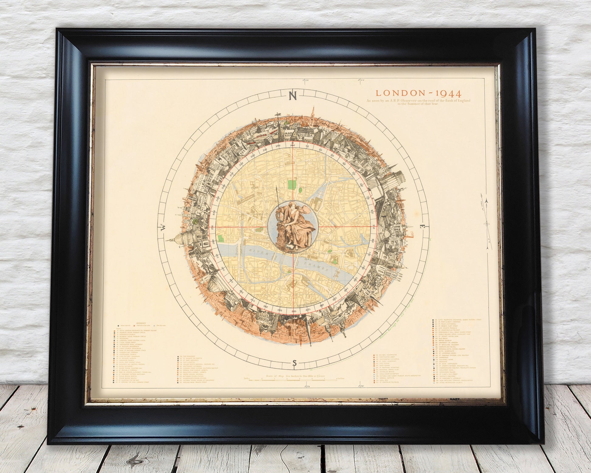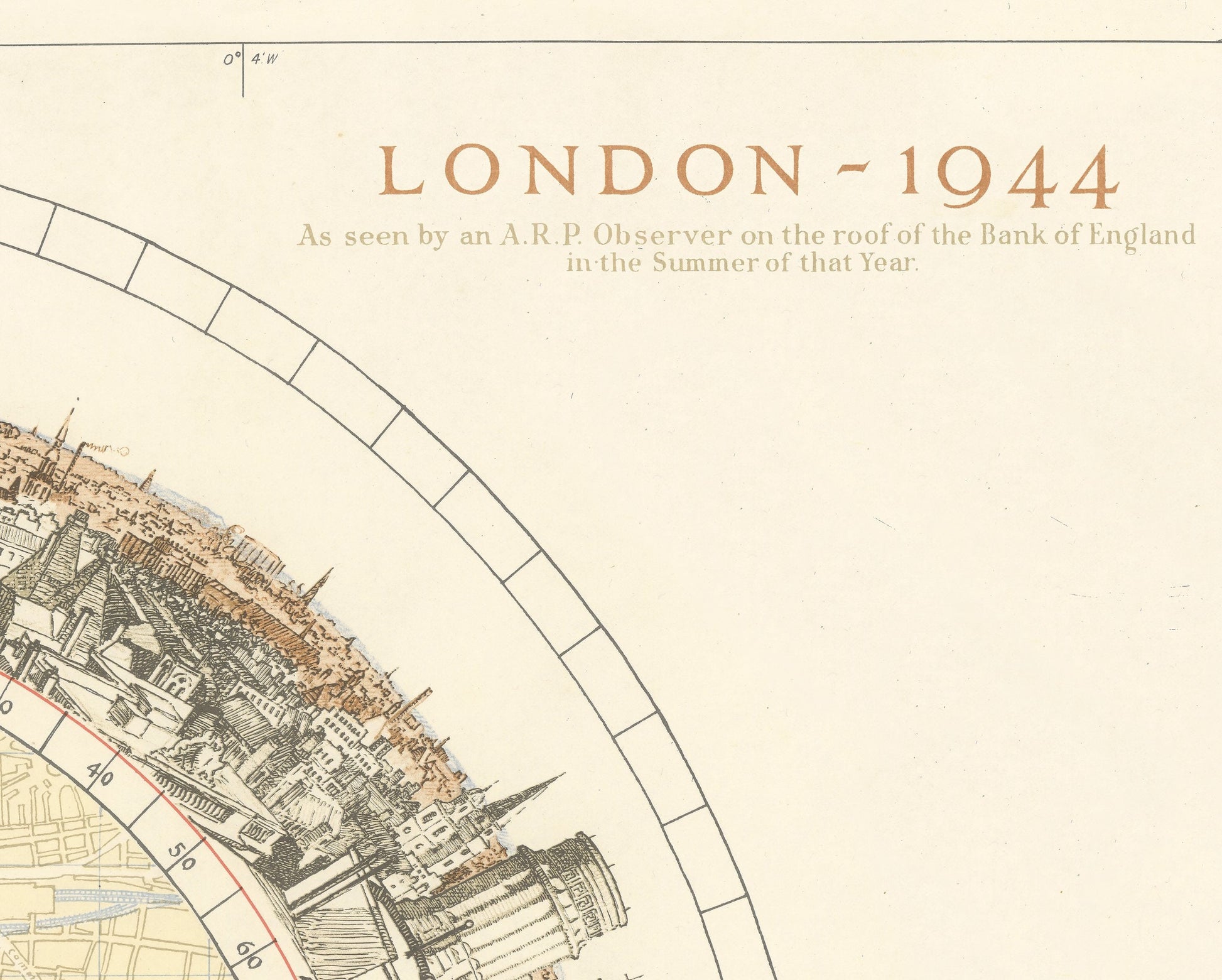 Vintage LONDON Map World War 2 Birds Eye View - Rooftop View 1944
