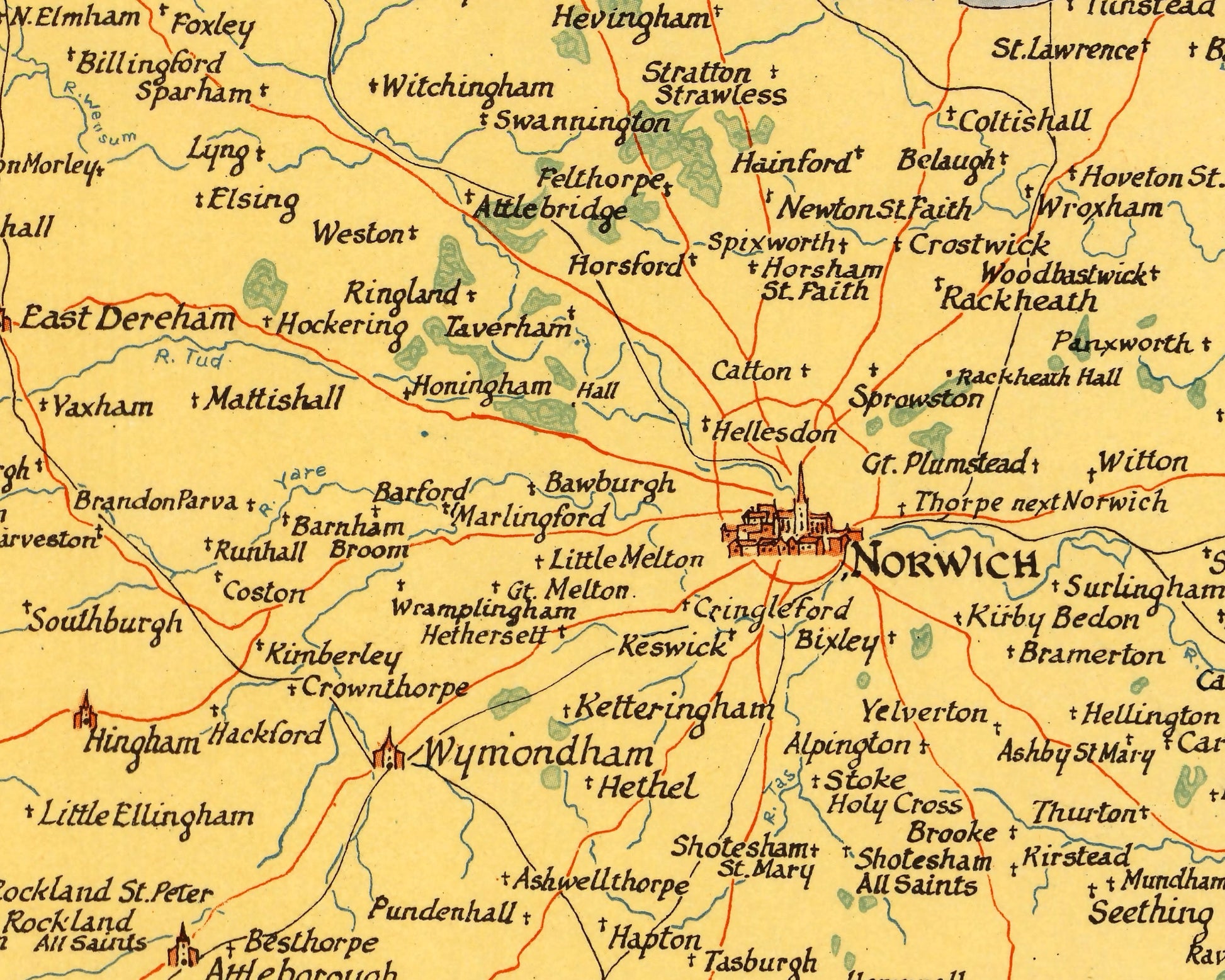 Vintage Norfolk Map by Ernest Clegg 1945 - Norwich, Kings Lynn, Yarmouth