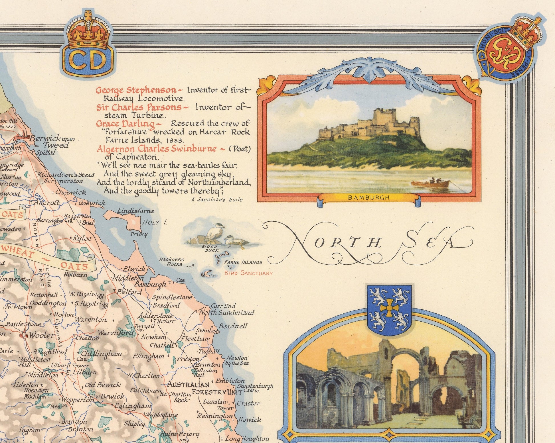 • A detailed geographical representation of the landscape, rivers and production of Northumberland