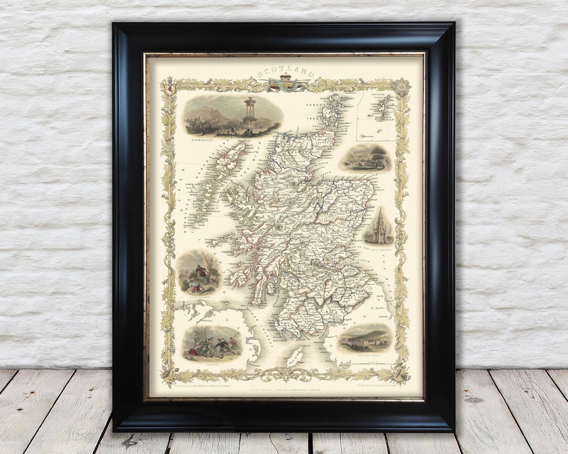 Vintage SCOTLAND Map 1851 by John Tallis and John Rapkin