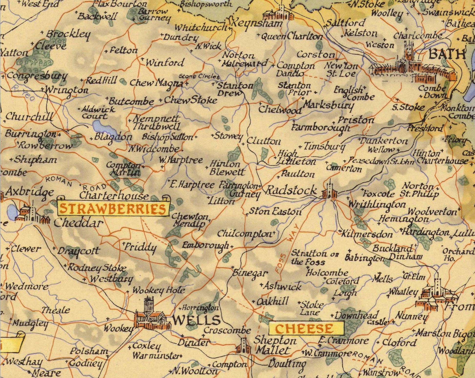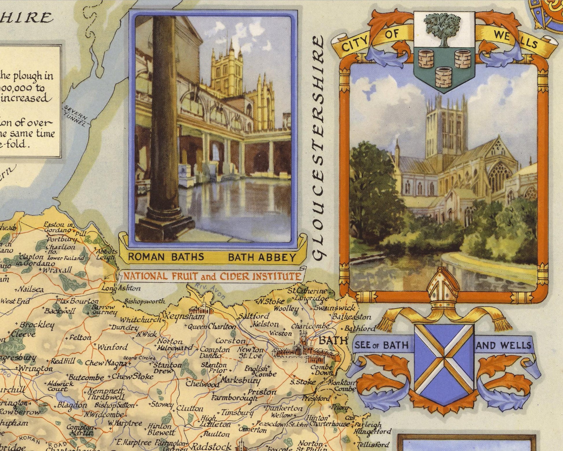 Vintage SOMERSET Map, 1947, Ernest Clegg - Taunton, Bath, Wells