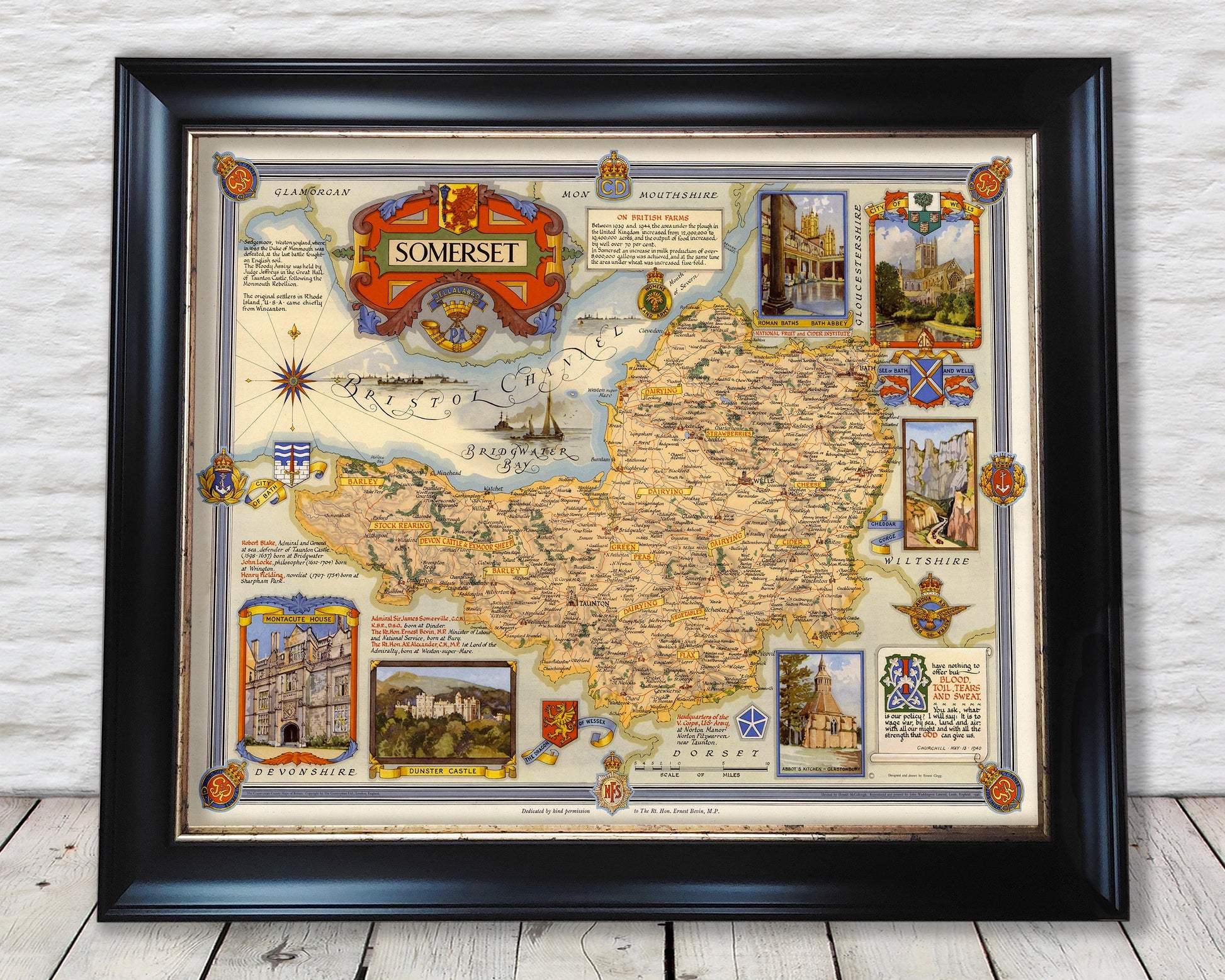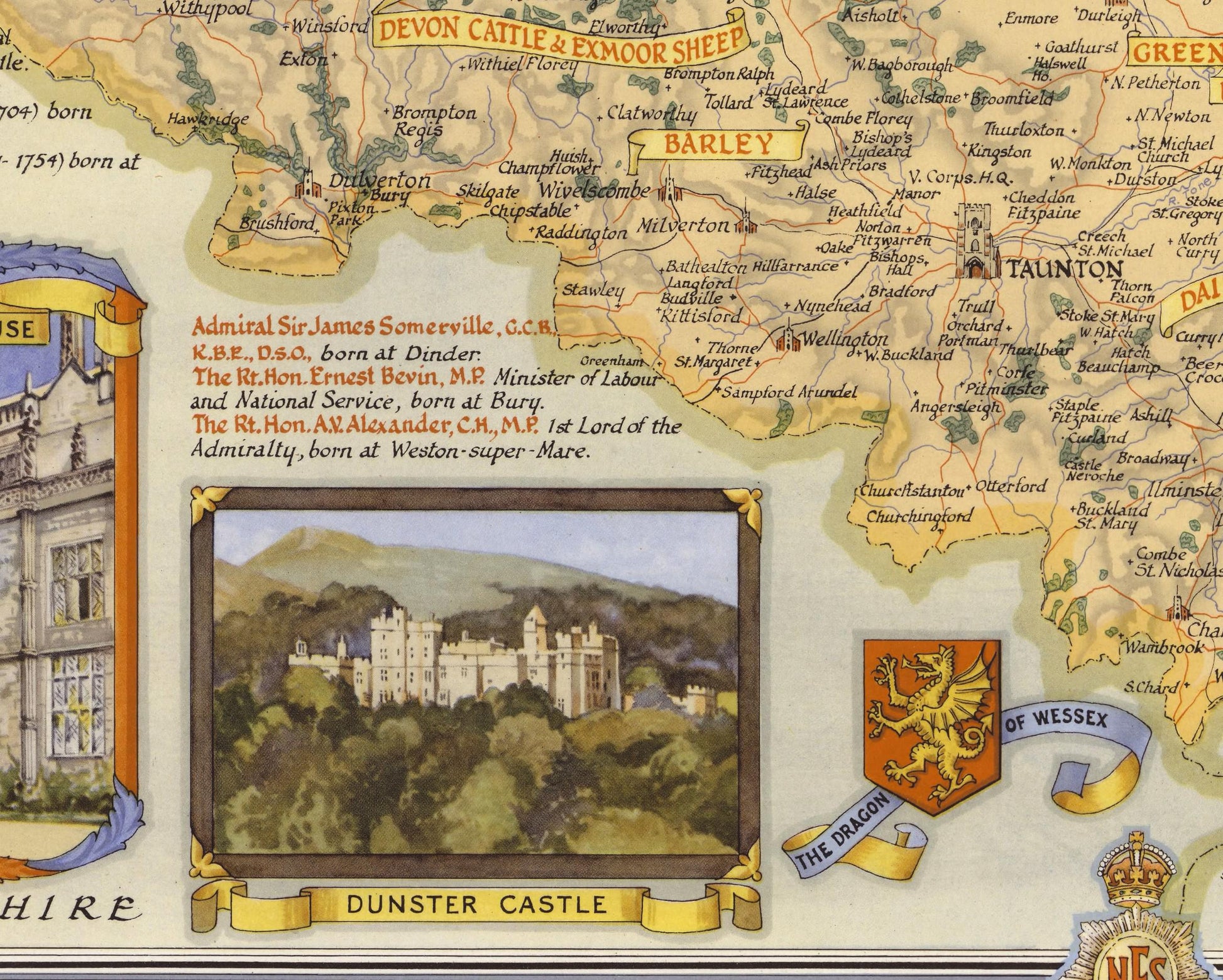 • A detailed geographical representation of the landscape, rivers and production of Somerset